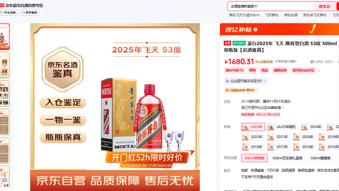 京东超市25年茅台1680/瓶了