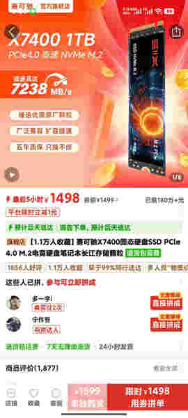 没想到硬盘居然涨了那么多,从原来的购买连接进去,现价居然要1498元了,真是想不到。闲着没用,出掉换钱。早知道当初多买几个了。