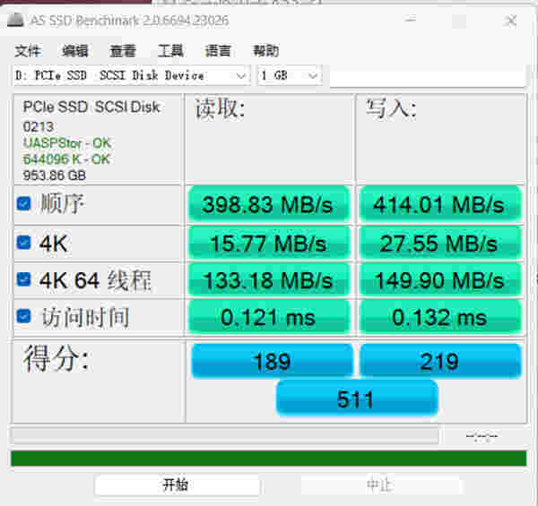 测试是用移动硬盘盒测的,速度偏慢,如果装电脑里,速度肯定就不一样了。