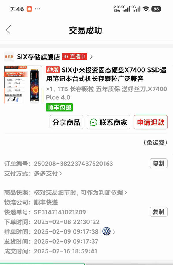 年初买的,5年质保的,据说是小米投资的赛可驰硬盘。质保期还有4年多。