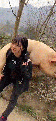 能背动一头猪的女生,哪个男生看了不迷糊啊,她可能背的动一头猪啊,在女生里已经很厉害了,别说了,非常心动