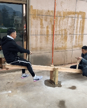 如果没有看错的话,这位大哥的手机是不是掉出来了,而且刚好卡在跷跷板下面……