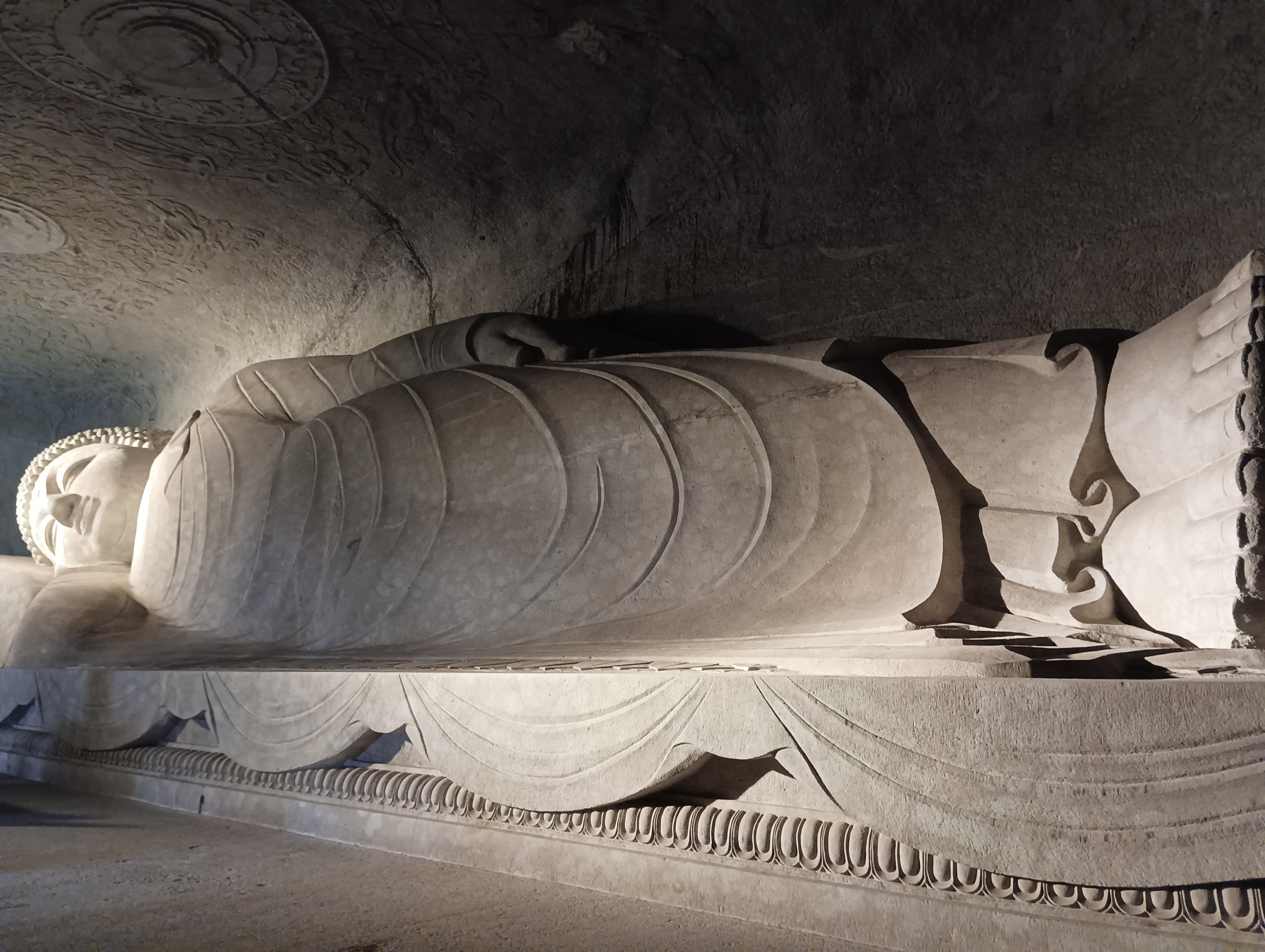 进得殿中,卧佛就在眼前,大概几十米长,四五米高吧,感觉也不是特别大。