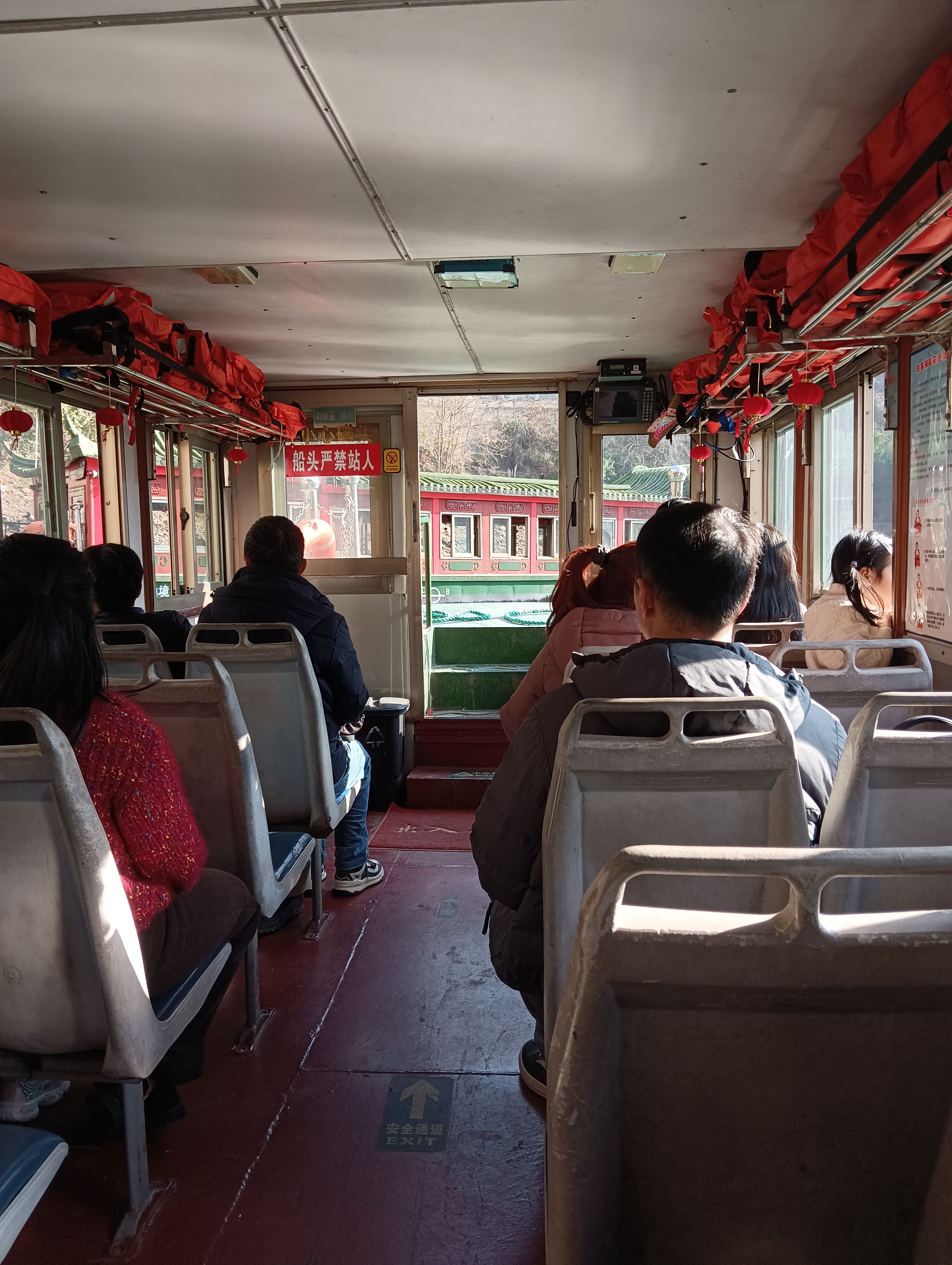 突突突的船开了十来分钟,突然一个甩尾,吓了老大一跳。原来是到了,要靠码头调头。