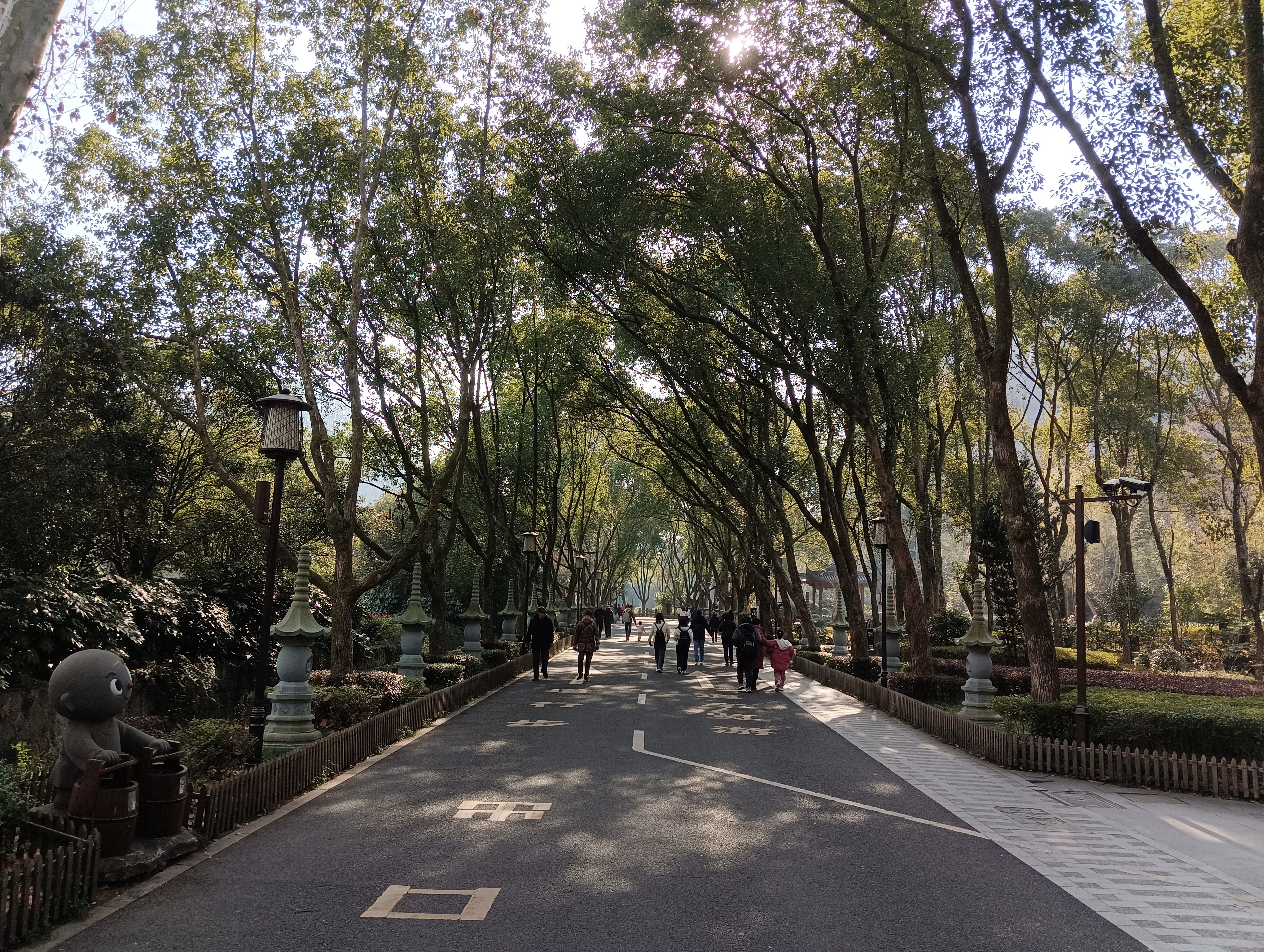 漫步林荫道,只可惜是冬天,夏天应该很舒服。也有观光车5元一人,感觉性价比不高,还是自己走走。