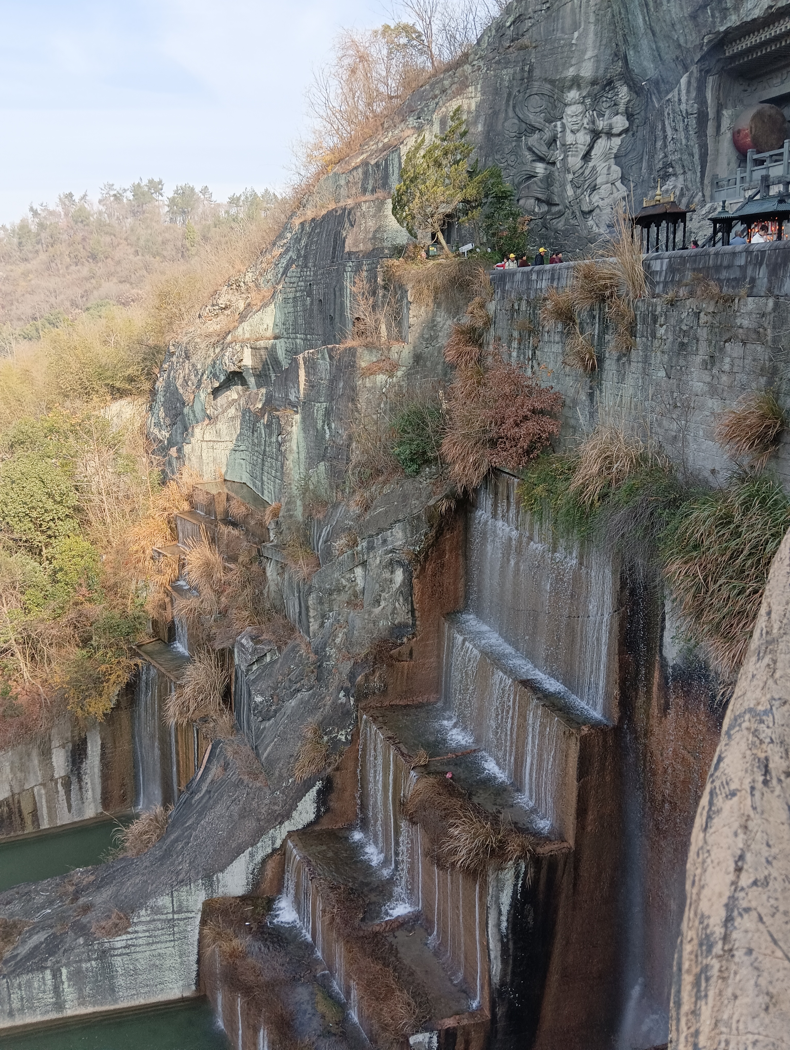 水池左右都可以拾阶而上,到瀑布顶上。