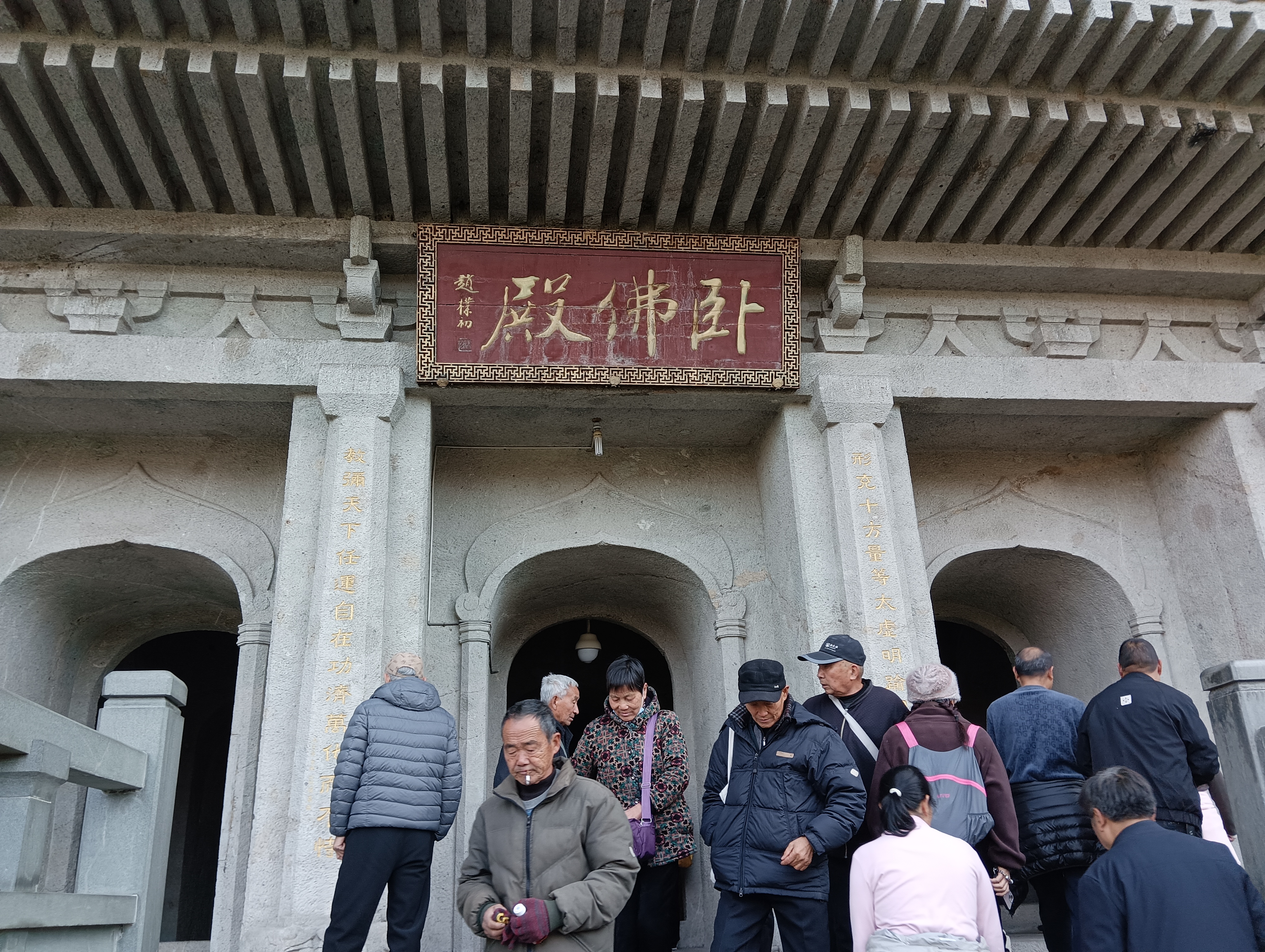 回头就是卧佛殿,门前香烟缭绕,老头老太乌泱乌泱的。