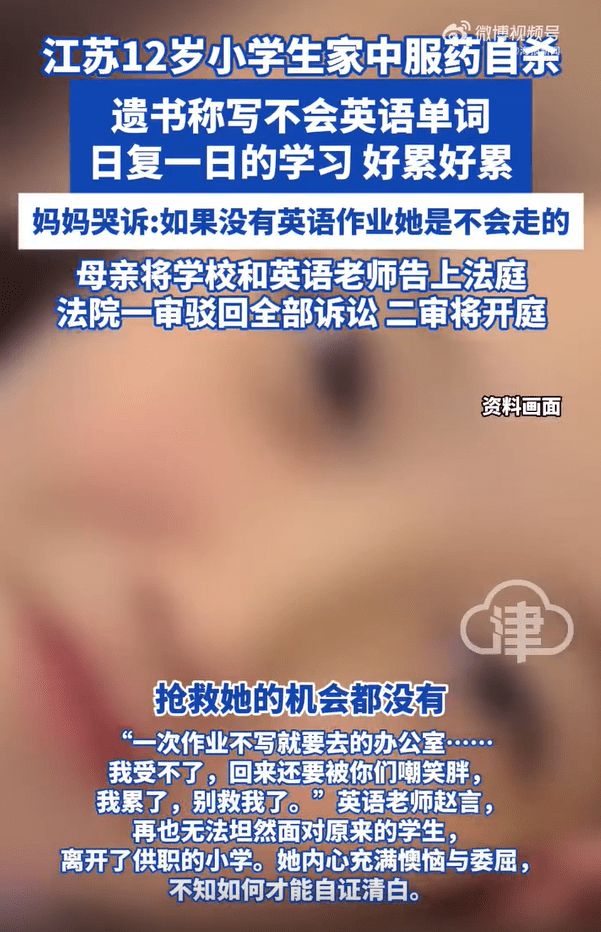 目前该案即将进入二审程序,事件也引发社会对教育压力、儿童心理健康及教师职责边界等问题的广泛关注。