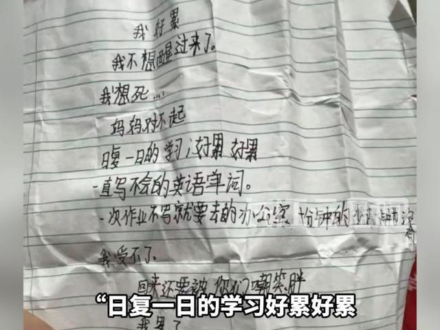 2026年1月11日报道,江苏一名12岁六年级女生许某(化名)于2024年9月在家中服用大量心脏病药物后不幸身亡,现场留有一封笔迹稚嫩的手写信,其中写道:“我好累,我不想醒过来了……日复一日的学习,好累好累,一直不会写的英语单词……别救我了。”