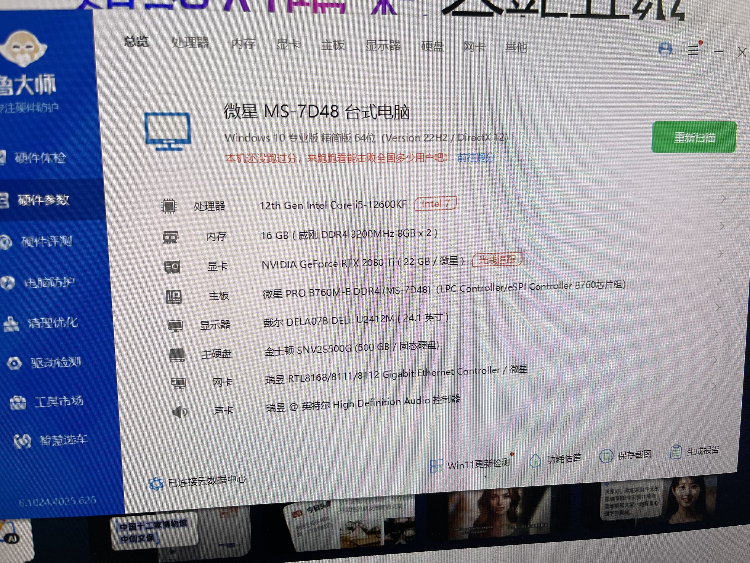 237. i5 12600KF 处理器 铜管散热风扇 微星B760M主板 威刚XPG 16G 3200 马甲条 金士顿500G M.2 NVME固态硬盘 微星RTX2080TI 魔改22G显卡 650W电源 华硕TUF GT301机箱 成色好 价格 4000元