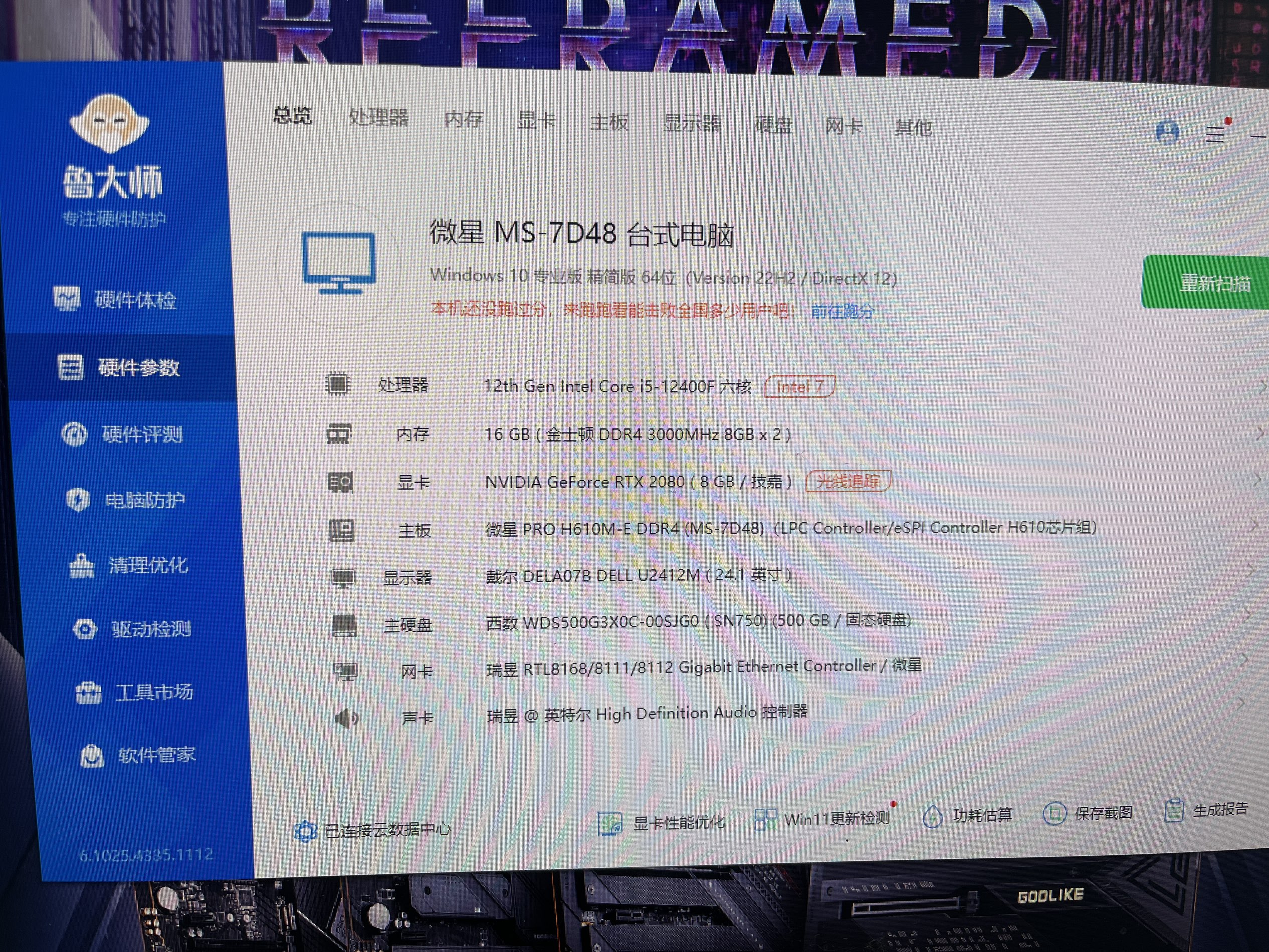 239.i5 12400F(全新处理器 航嘉铜管散热风扇 微星H610M主板 金士顿骇客16G 灯条 WD 500G M.2 NVME黑盘 技嘉RTX2080 8G 超级雕 显卡 安钛克500W电源 航嘉侧透机箱 价格 3050元