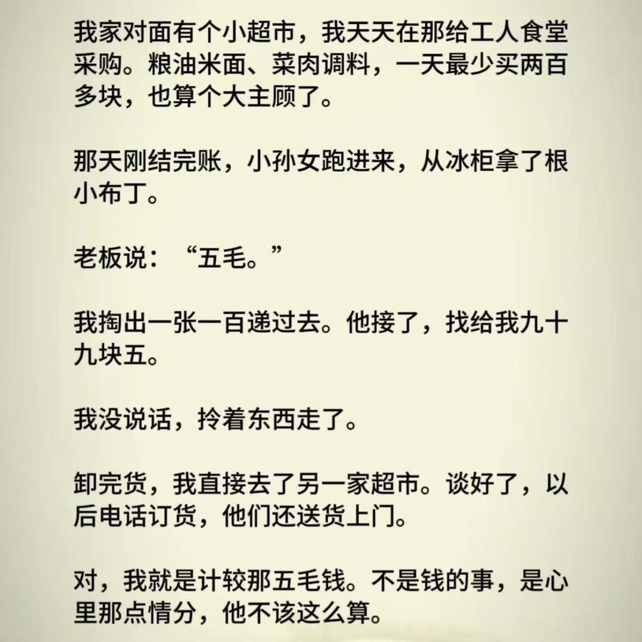 不收是情分,收是本份,没啥好说的,现实中这种小老板多了去了,如果觉得不爽换一家就是了........