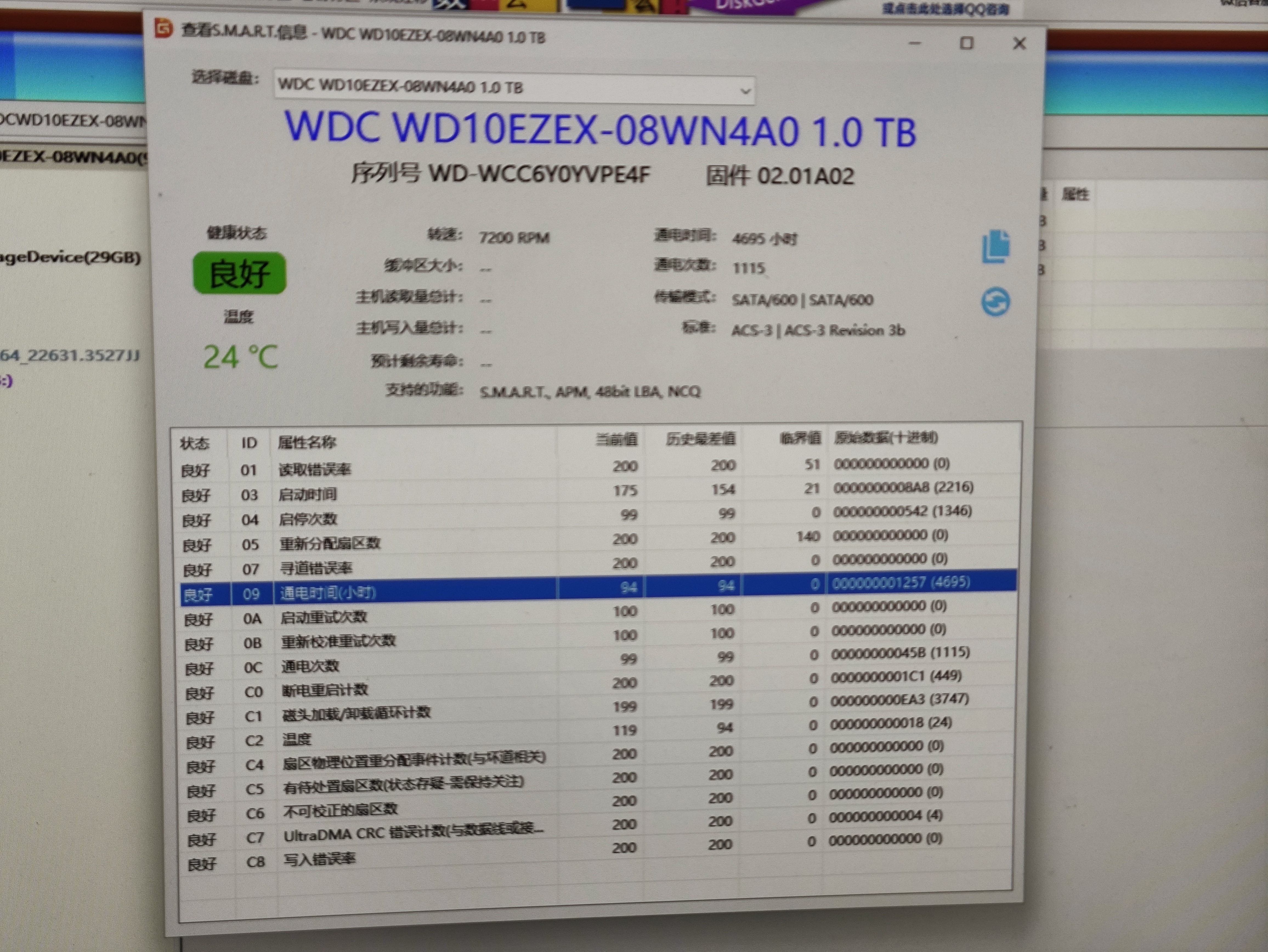 有一个wd2t的使用6,7千小时,状态良好,240