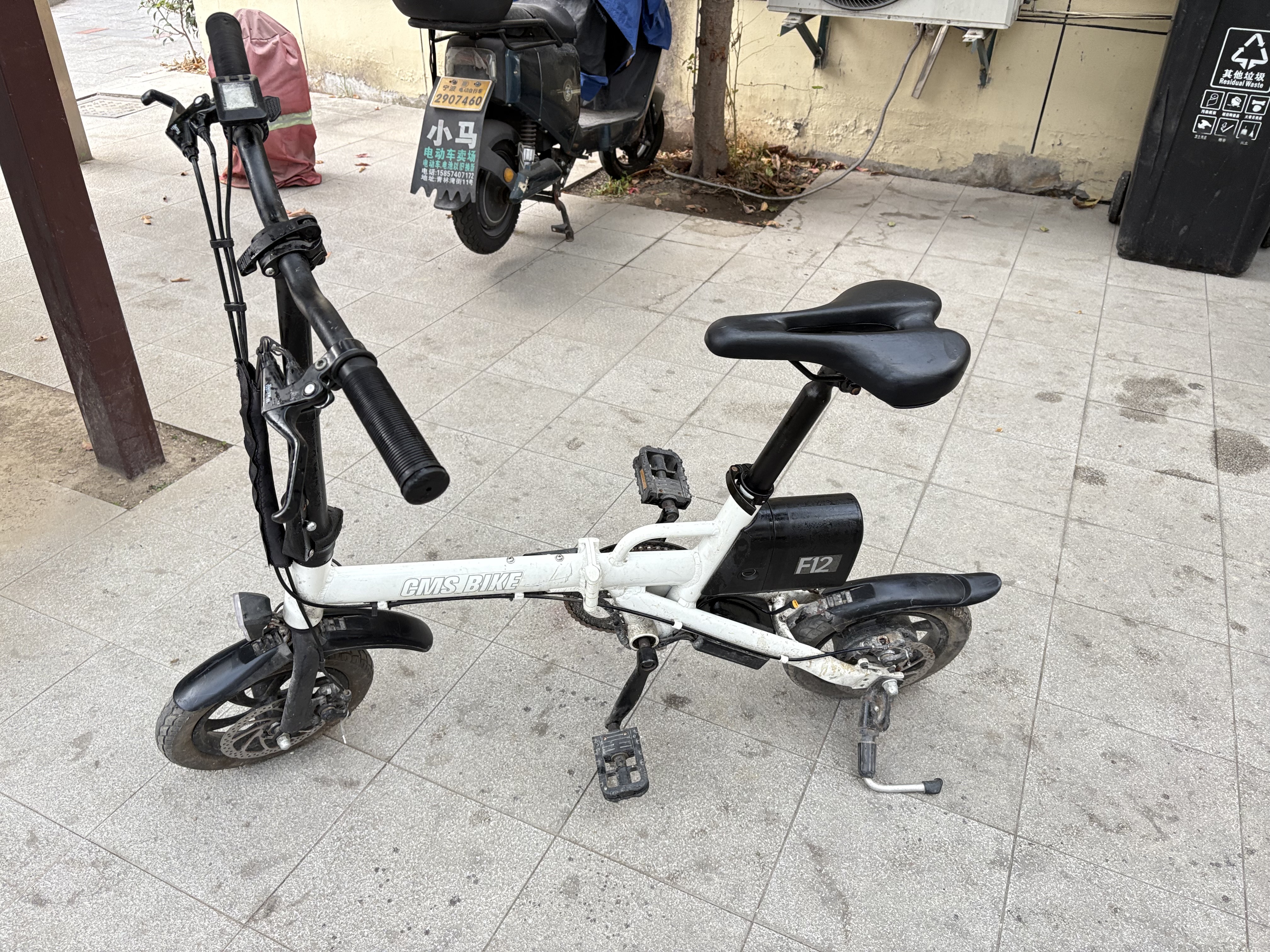 铝合金车架的折叠电瓶车,电池报废了,轮胎没磨损,只能当自行车骑了,实物拍摄,明码标价,一问三不知,海曙区望春提货,价格222快来