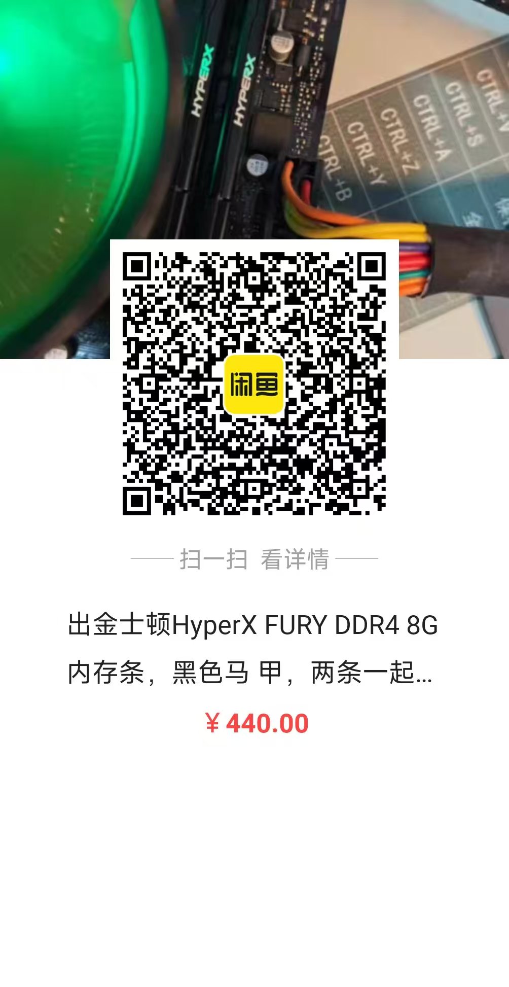 13、金士顿HyperX FURY DDR4 8G内存条,黑色马甲,两条一起出,频率2666MHz ———— ISSO自提 400