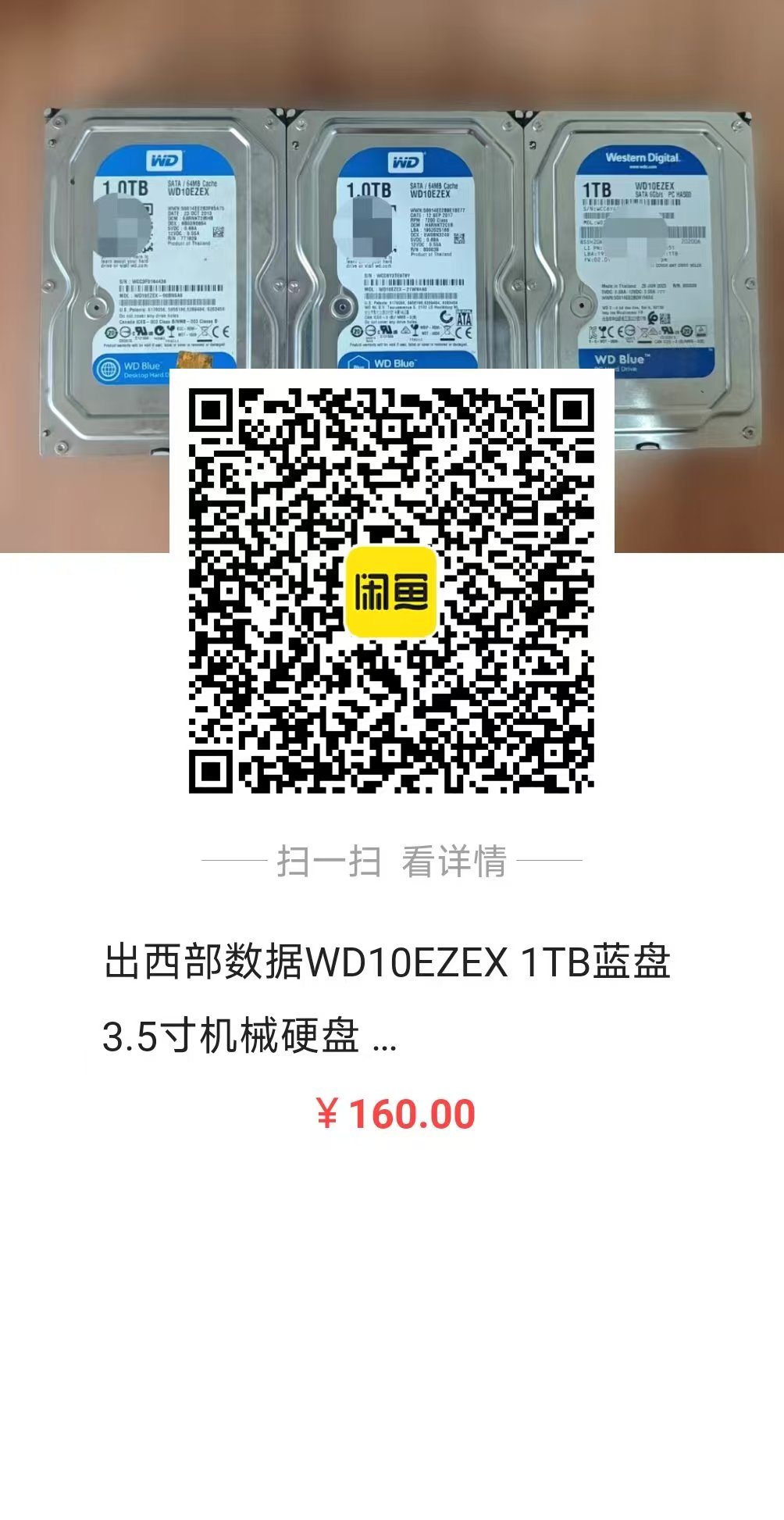 16、3块 西部数据WD10EZEX1TB蓝盘3.5寸机械硬盘———— isso自提打包220 单块75