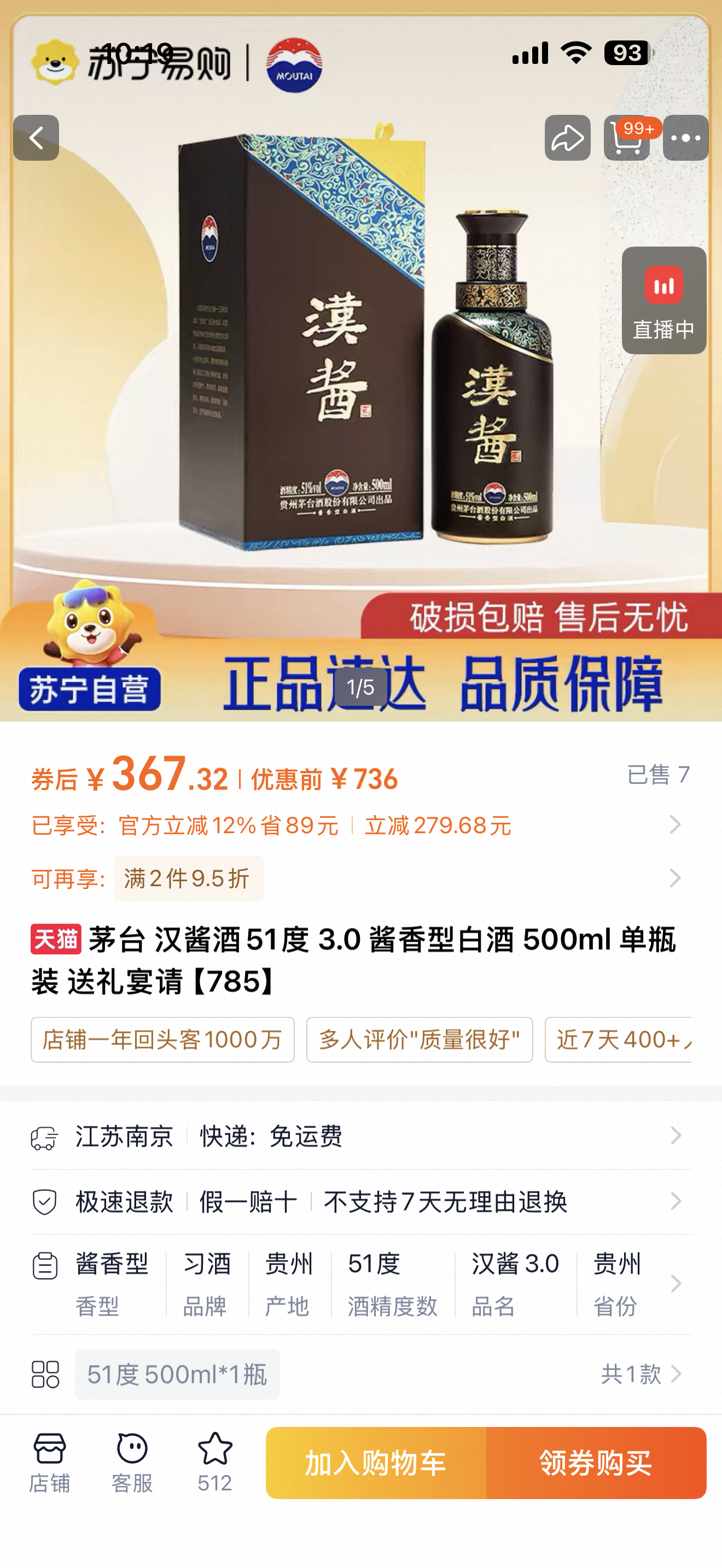 汉酱酒,茅台酒厂,51度,500ml,二瓶400元