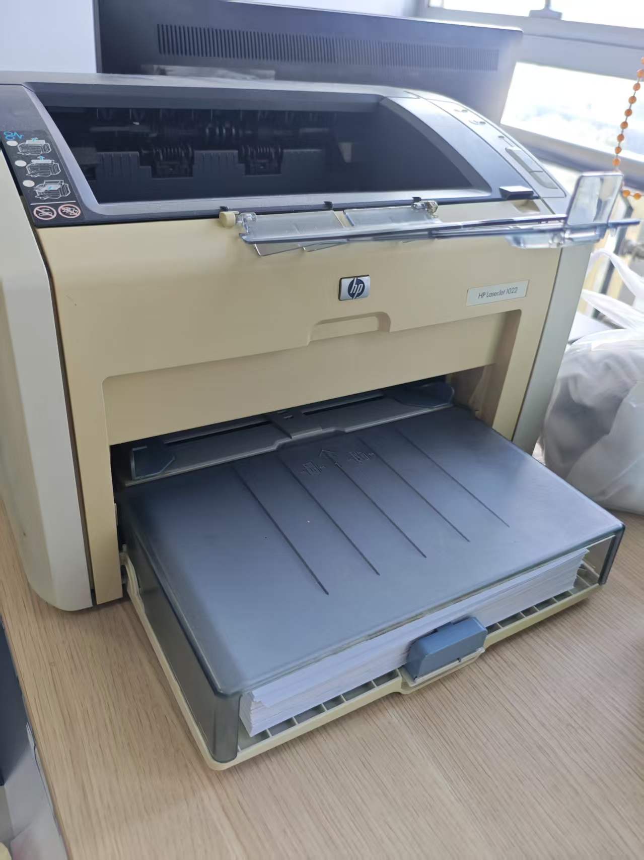 出1个HP1022打印机。打印速度比1020快一点。外观差不多的。199元。带打印线和电源线。外观很新。就是有发黄,用的地方旁边晒到太阳。