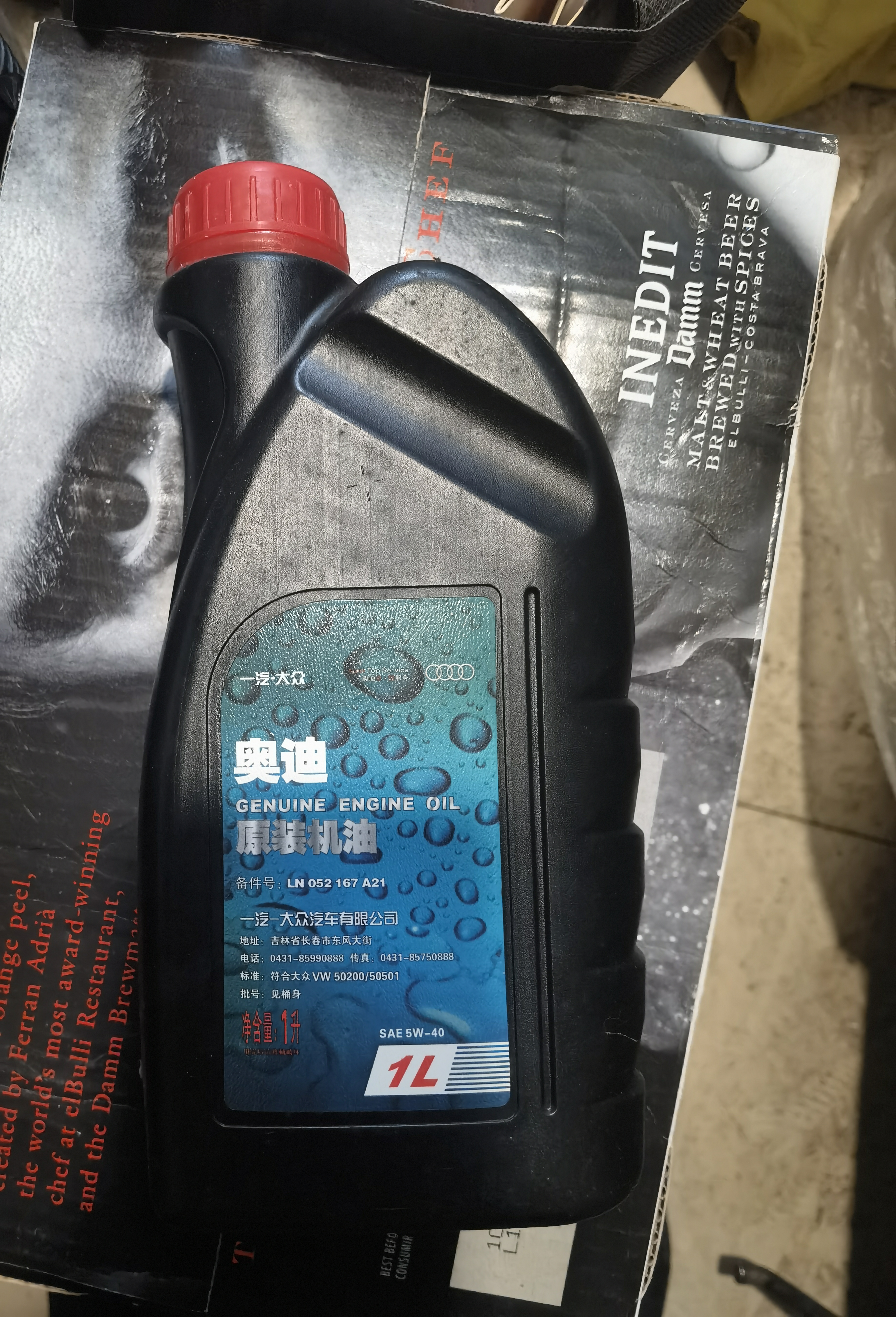 13瓶原装过期奥迪原装1升装机油!整理车棚翻出有13瓶,已过期未拆未使用的奥迪原装5W-40机油1升!宁波鄞州区世纪东方广场附近自提,拍下不退,请注意已过保质期,不保证质量,自己使用后果自负,与本人无关!