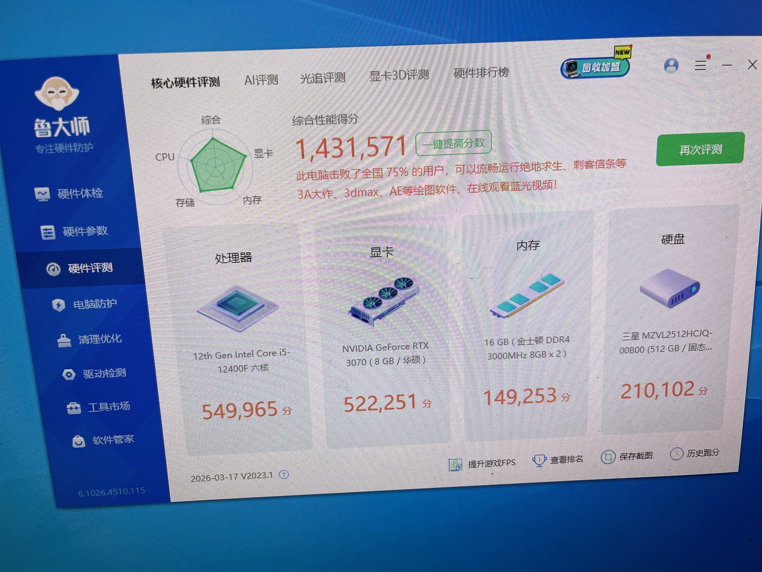 264. i5 12400F 铜管散热 技嘉H610M主板 金士顿骇客16G D4 3000马甲灯条 三星500G M.2 NVME固态硬盘 华硕巨齿鲨 RTX3070 8G 独显 航嘉600W电源 TT机箱 个人一手 CPU主板25年升级的 价格 3888元