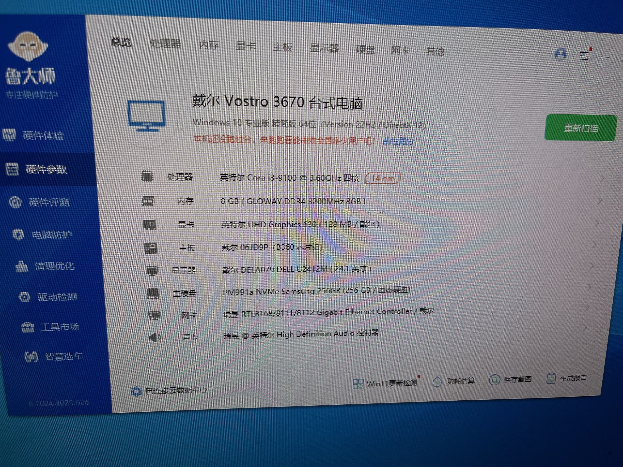 270.ELL 品牌机 i3 9100 B360主板 8G 3200内存 三星256G M.2 固态硬盘 机箱电源 成色好 就一台 办公性价比无敌 价格 750元