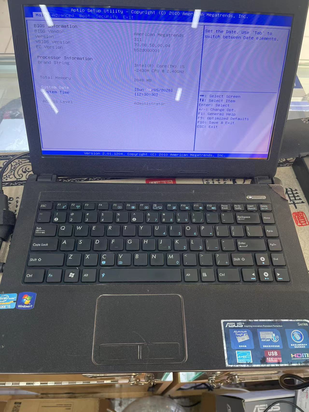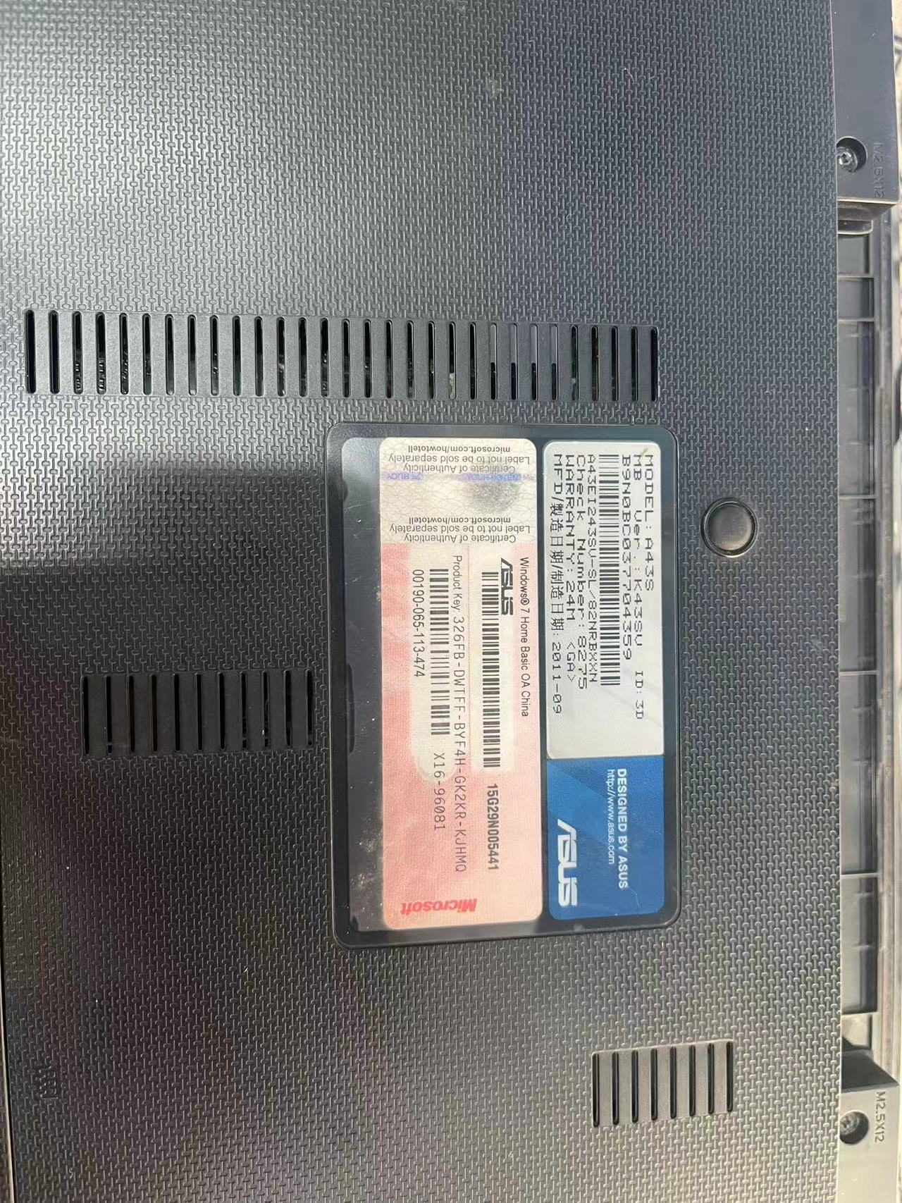 华硕笔记本 i5 2430m。2g内存。无硬盘。无电池。带原装充电器。价格160。正常使用。。