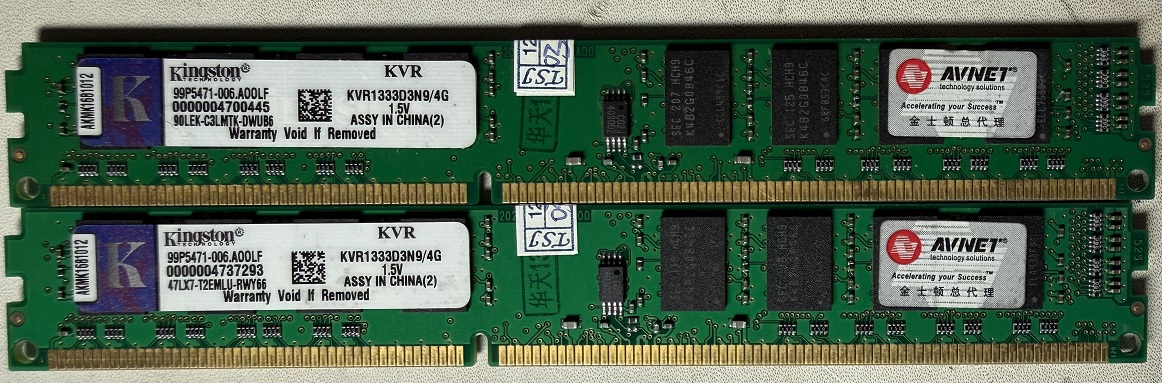 出两条金士顿ddr3 1333 4g