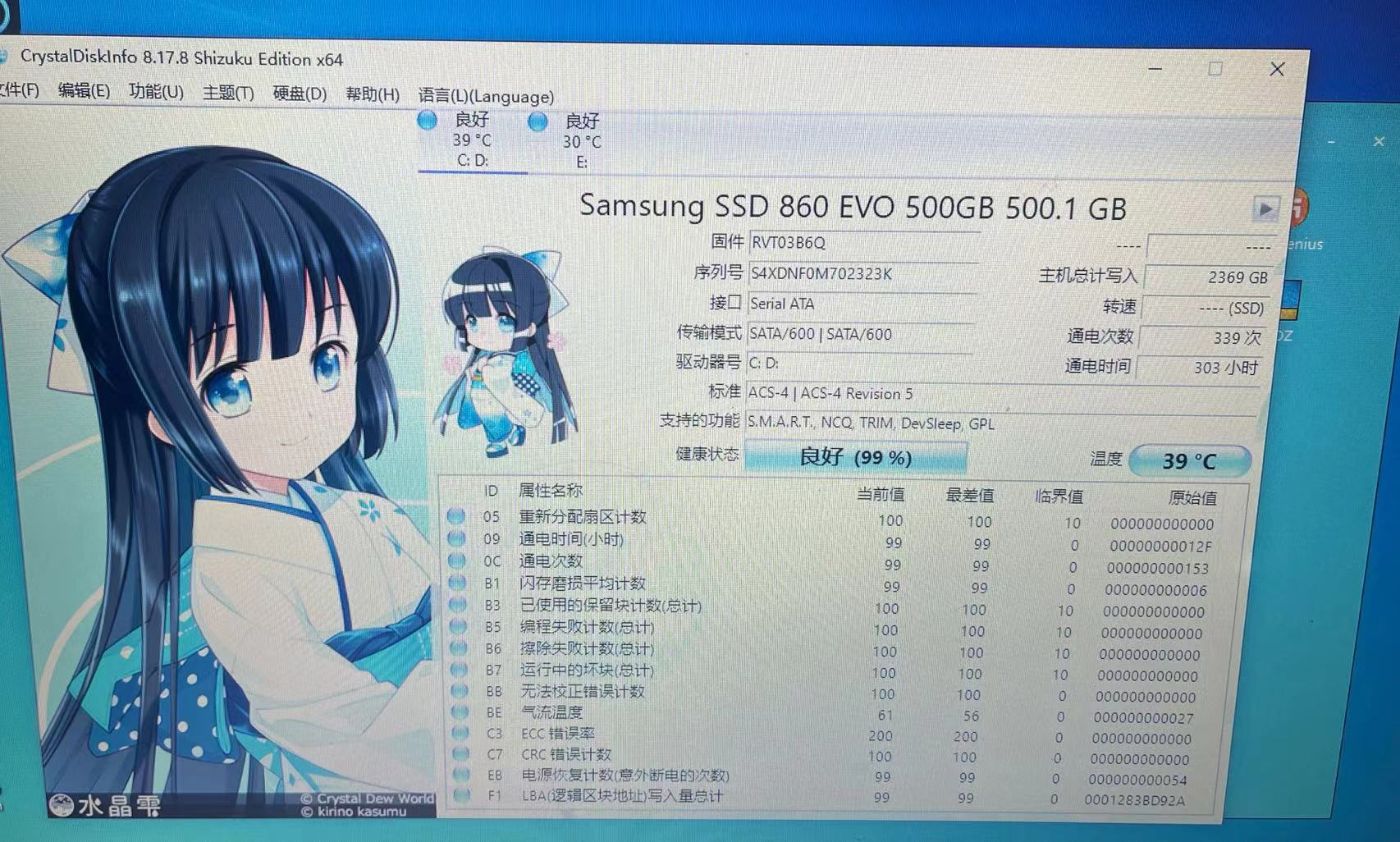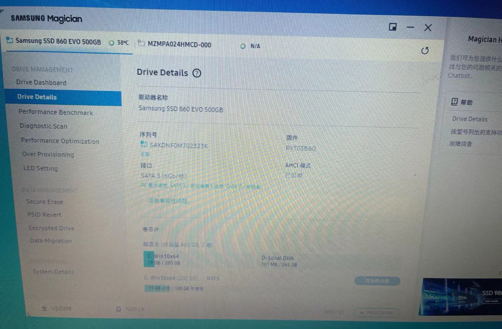 三星500G固态860evo 使用时间不长。。。