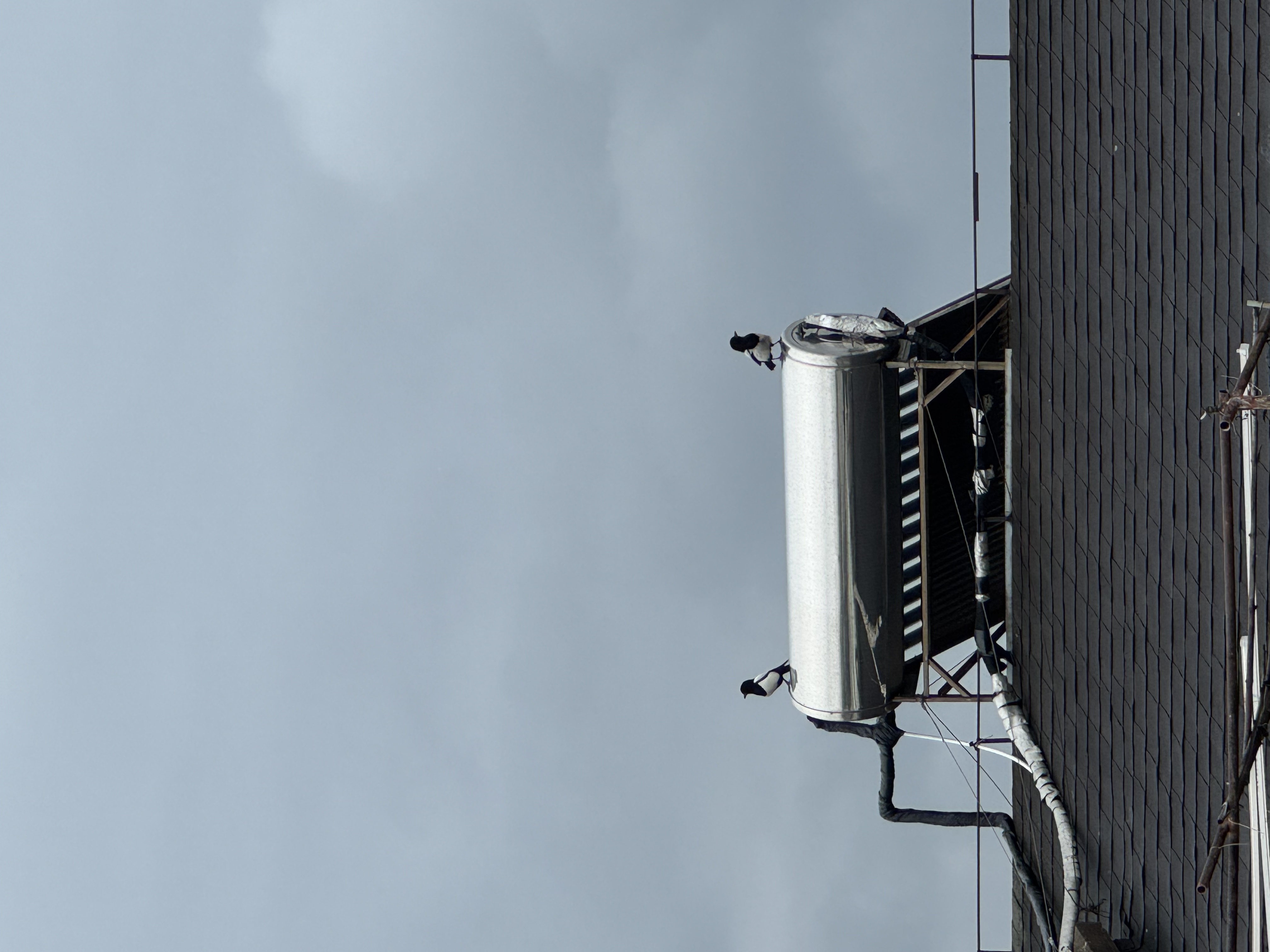 今天家外面看到了喜鹊,怎么这么大啊二三个拳头这么大,大家看看这二个什么鸟