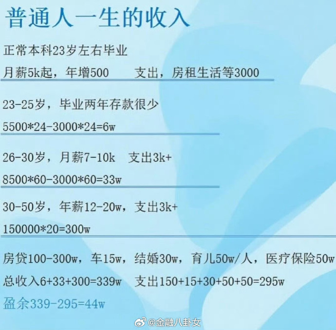 网上看到,有人给普通人的一生算了笔账。。。