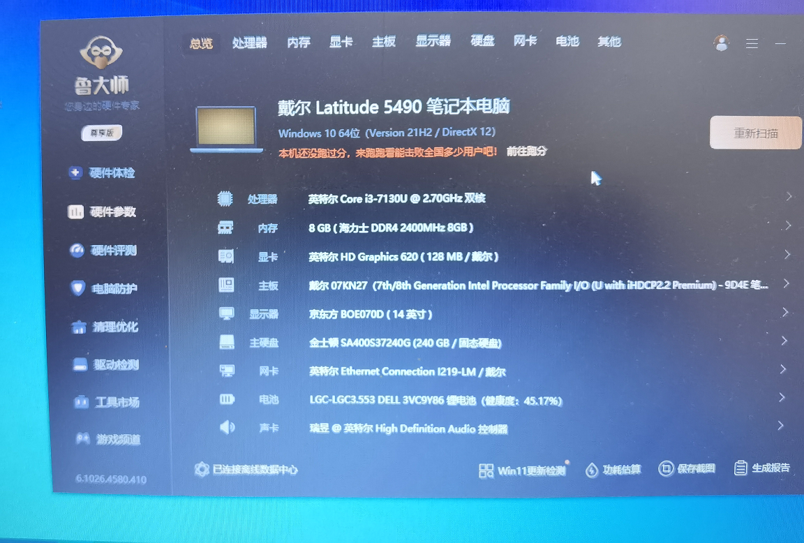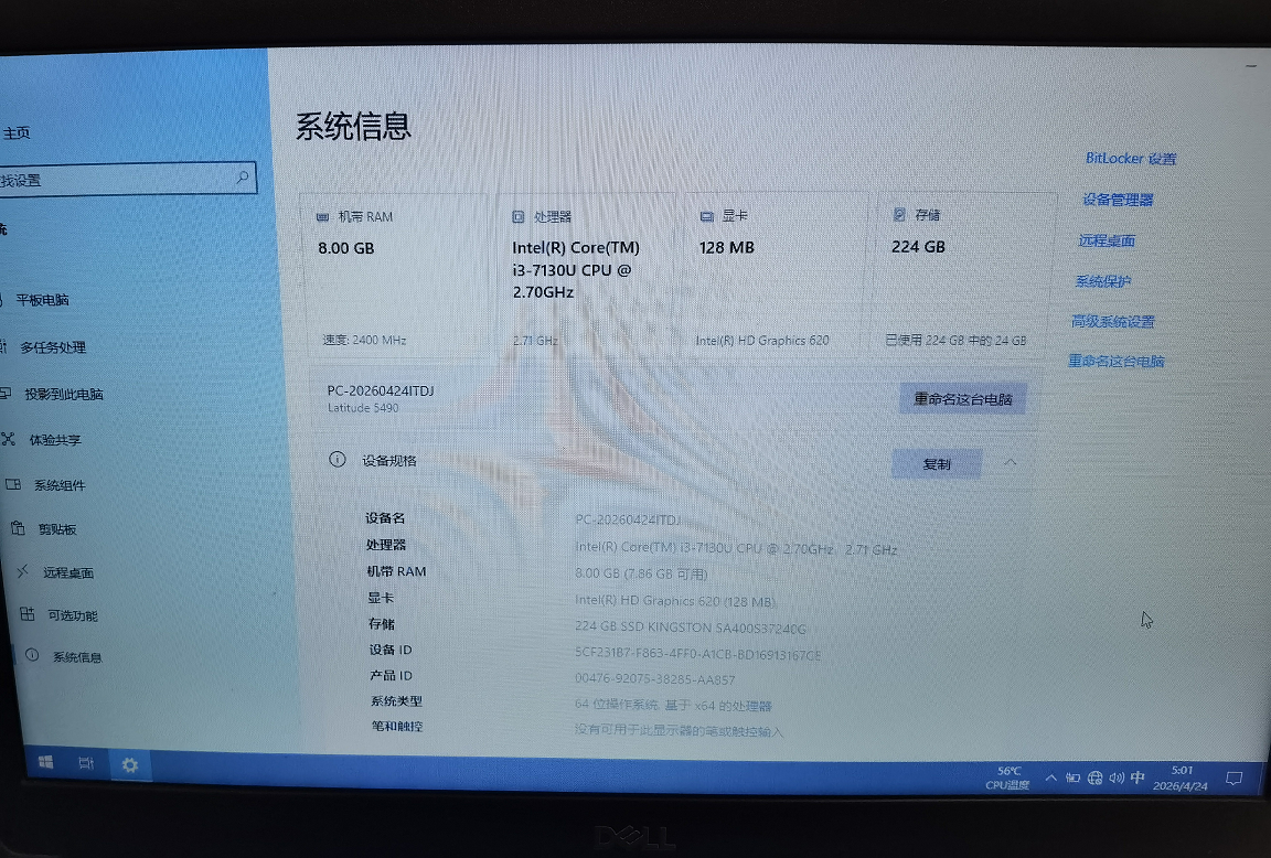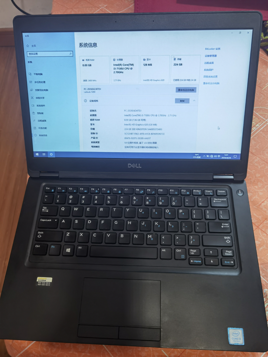 【500元】戴尔Dell Latitude 5490笔记本,14寸屏,除电池坏,其他都正常