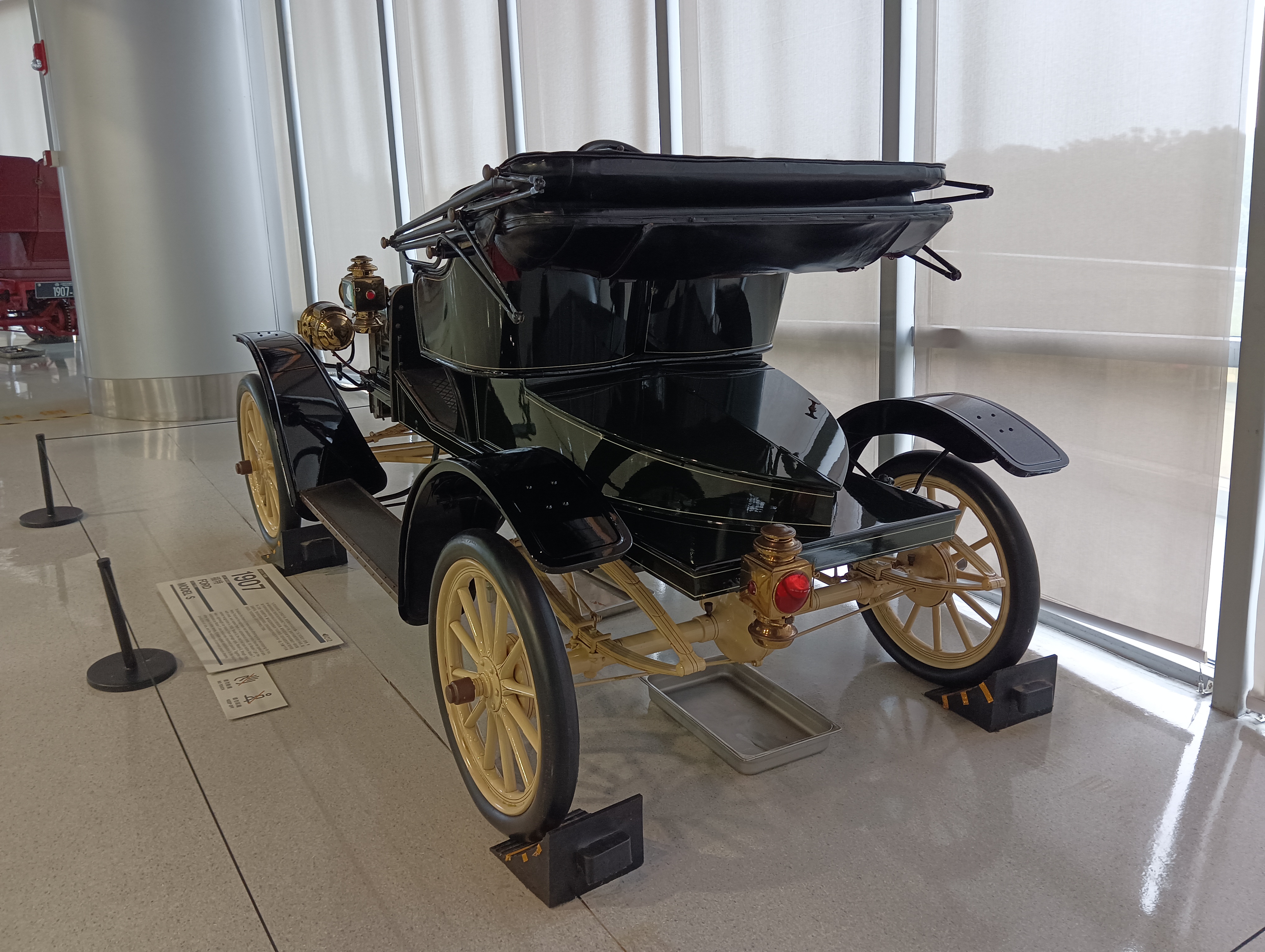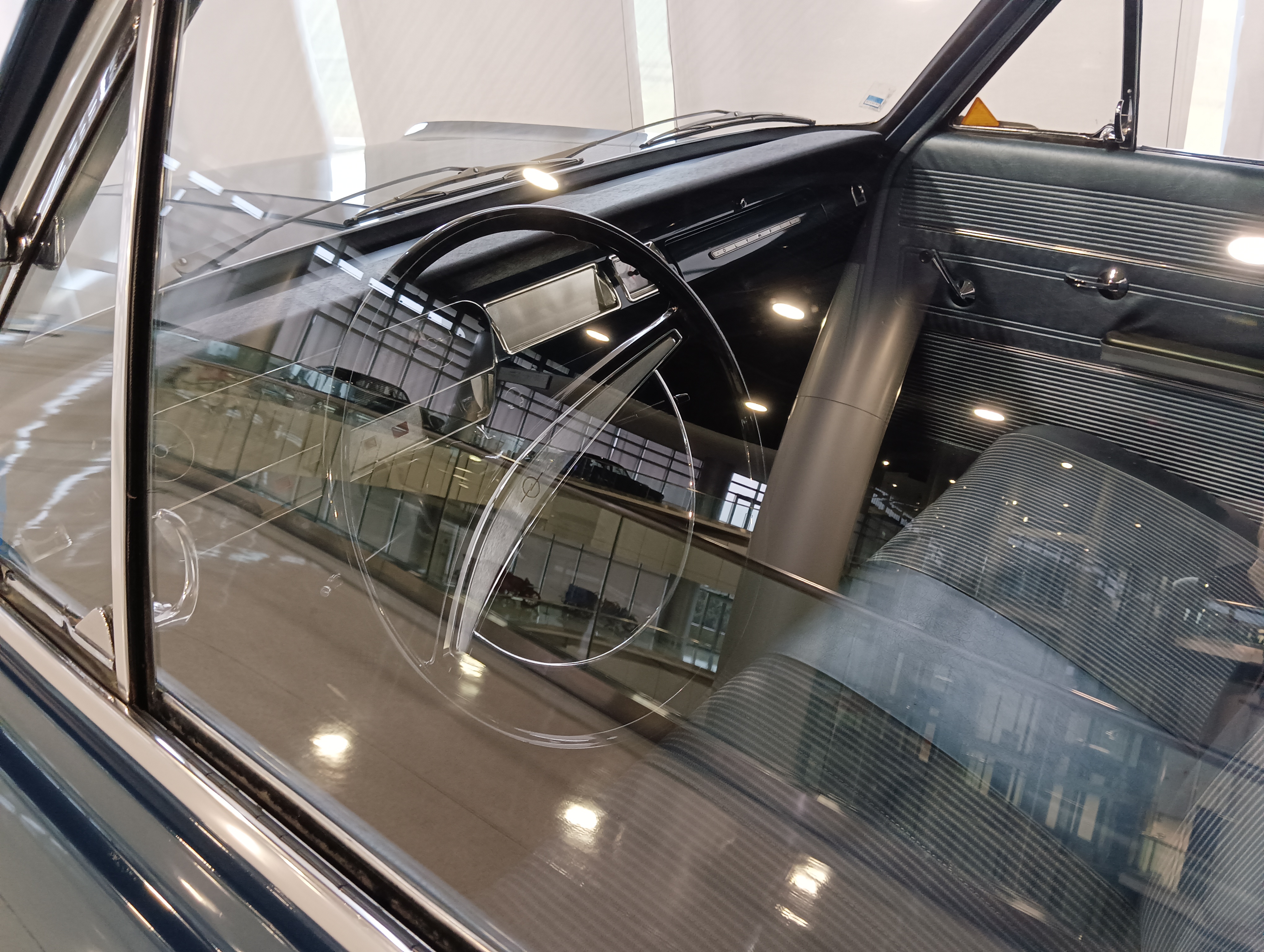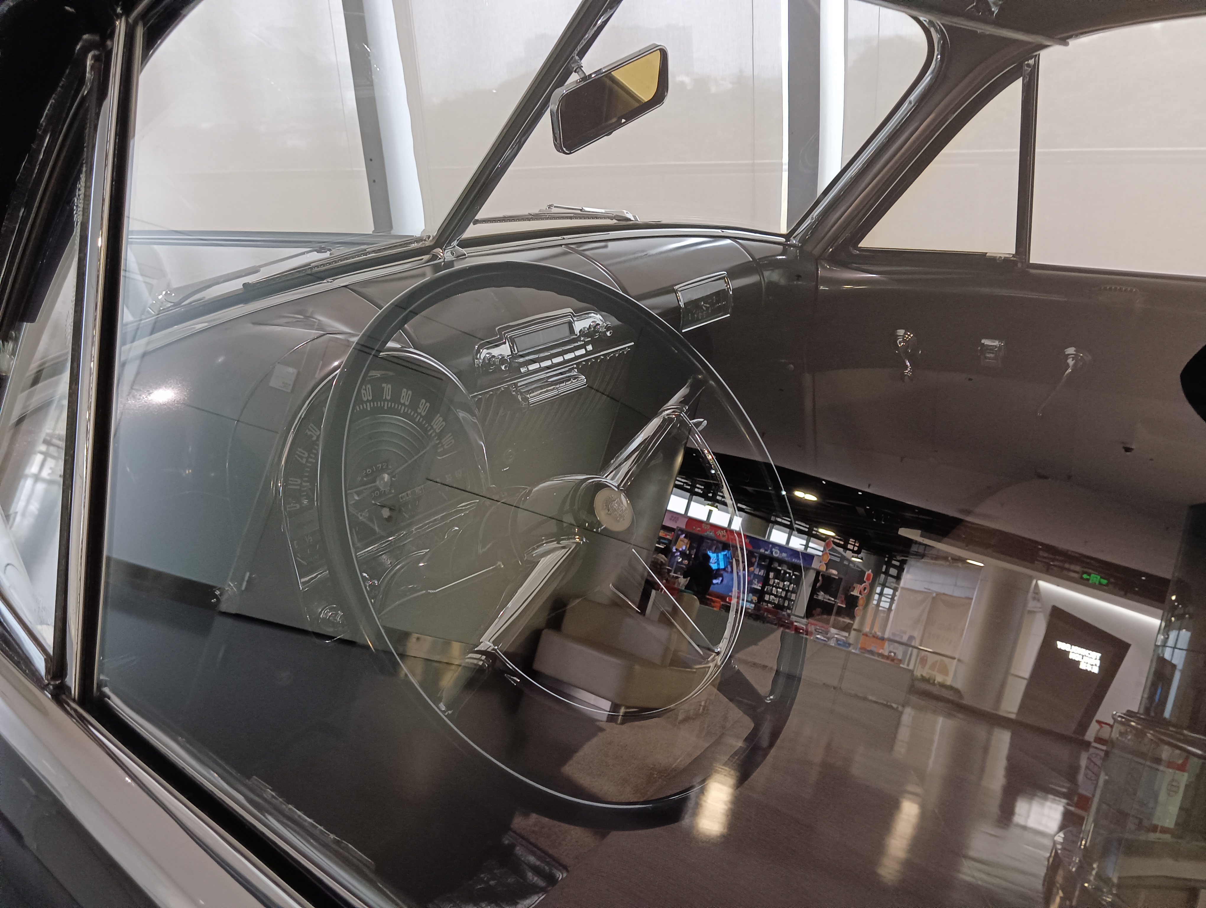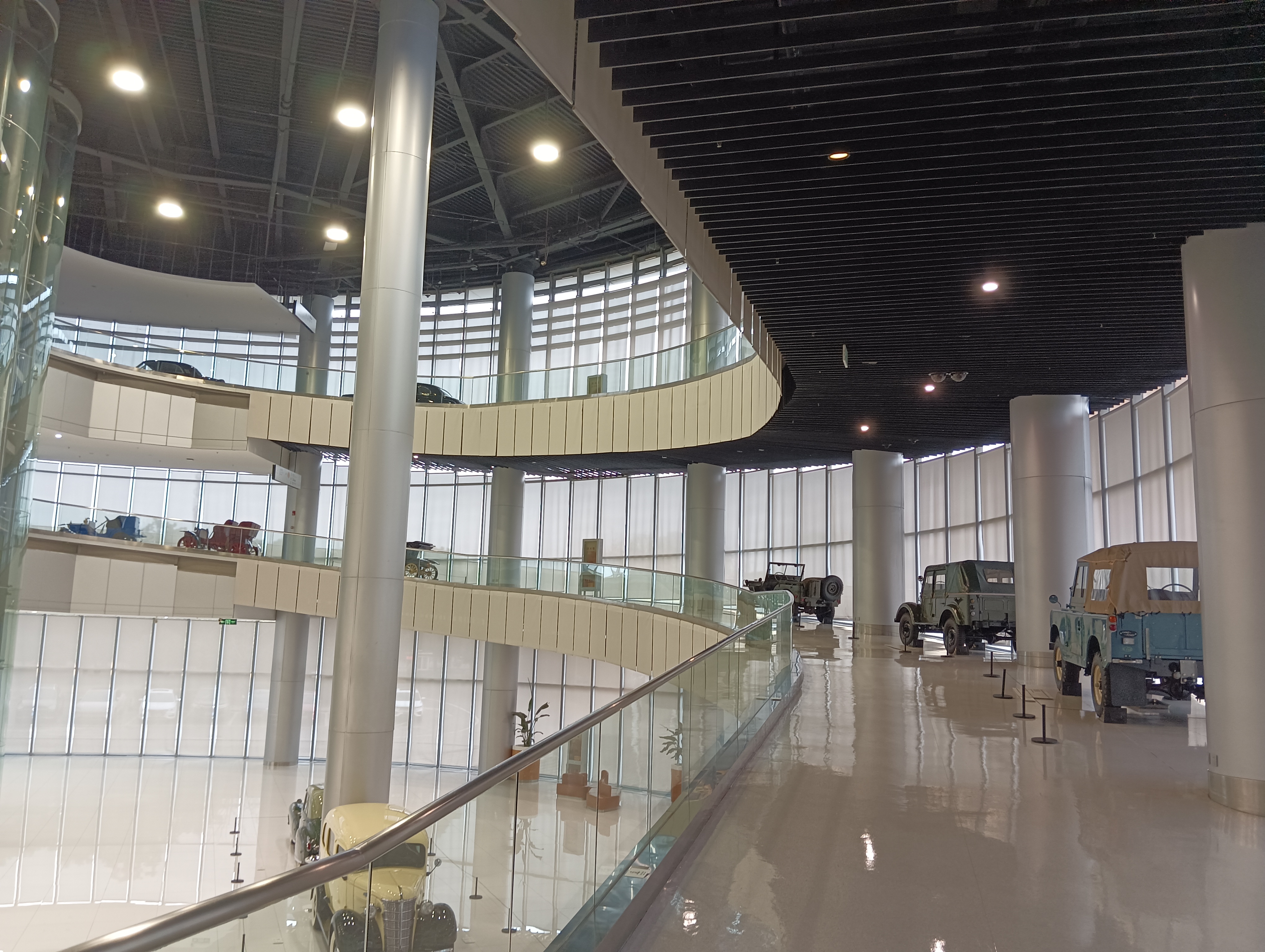 整个博物馆室内是一个四层环形结构,每层之间通过环形坡道连接,坡道上也停了一些展品车。