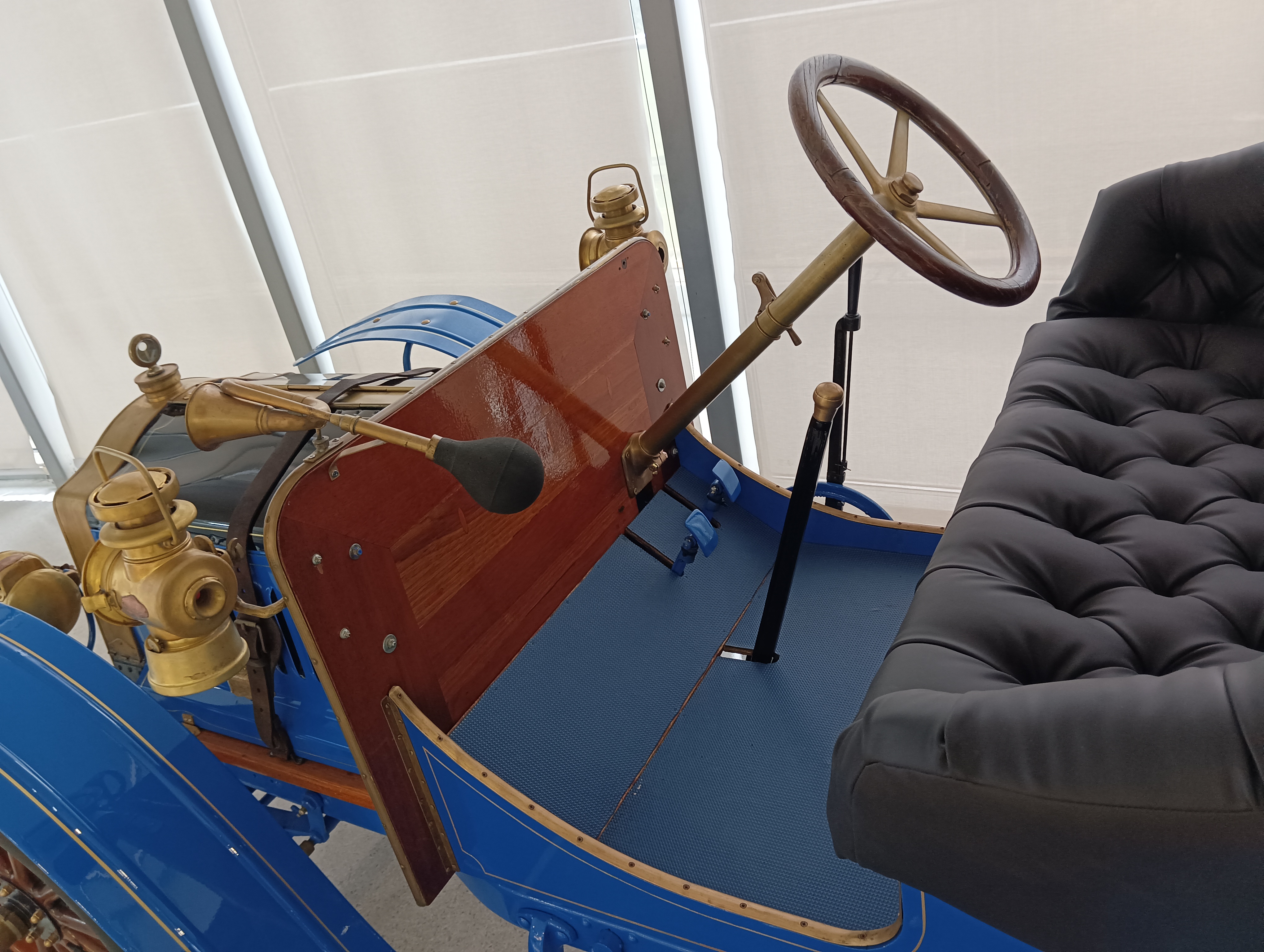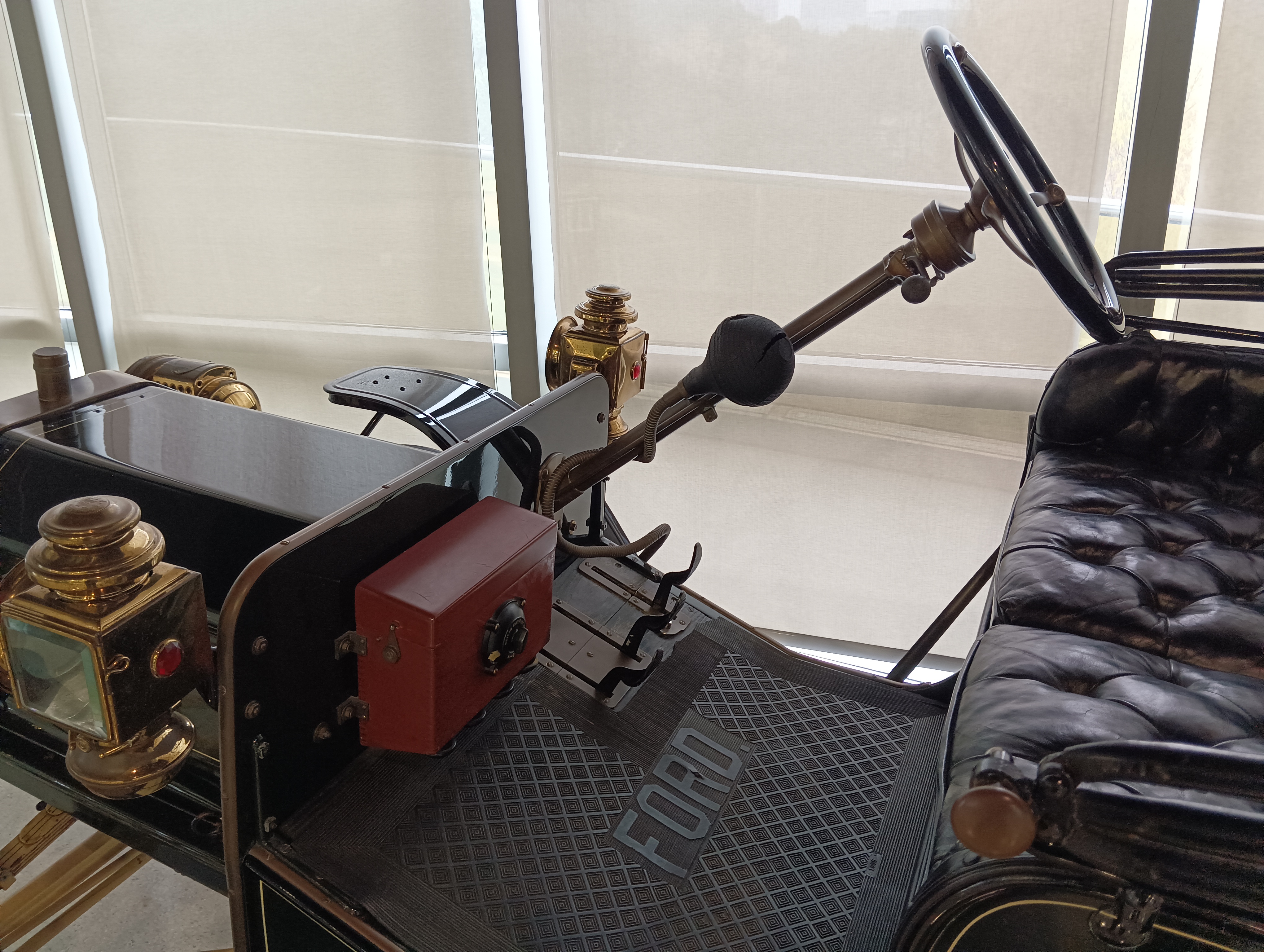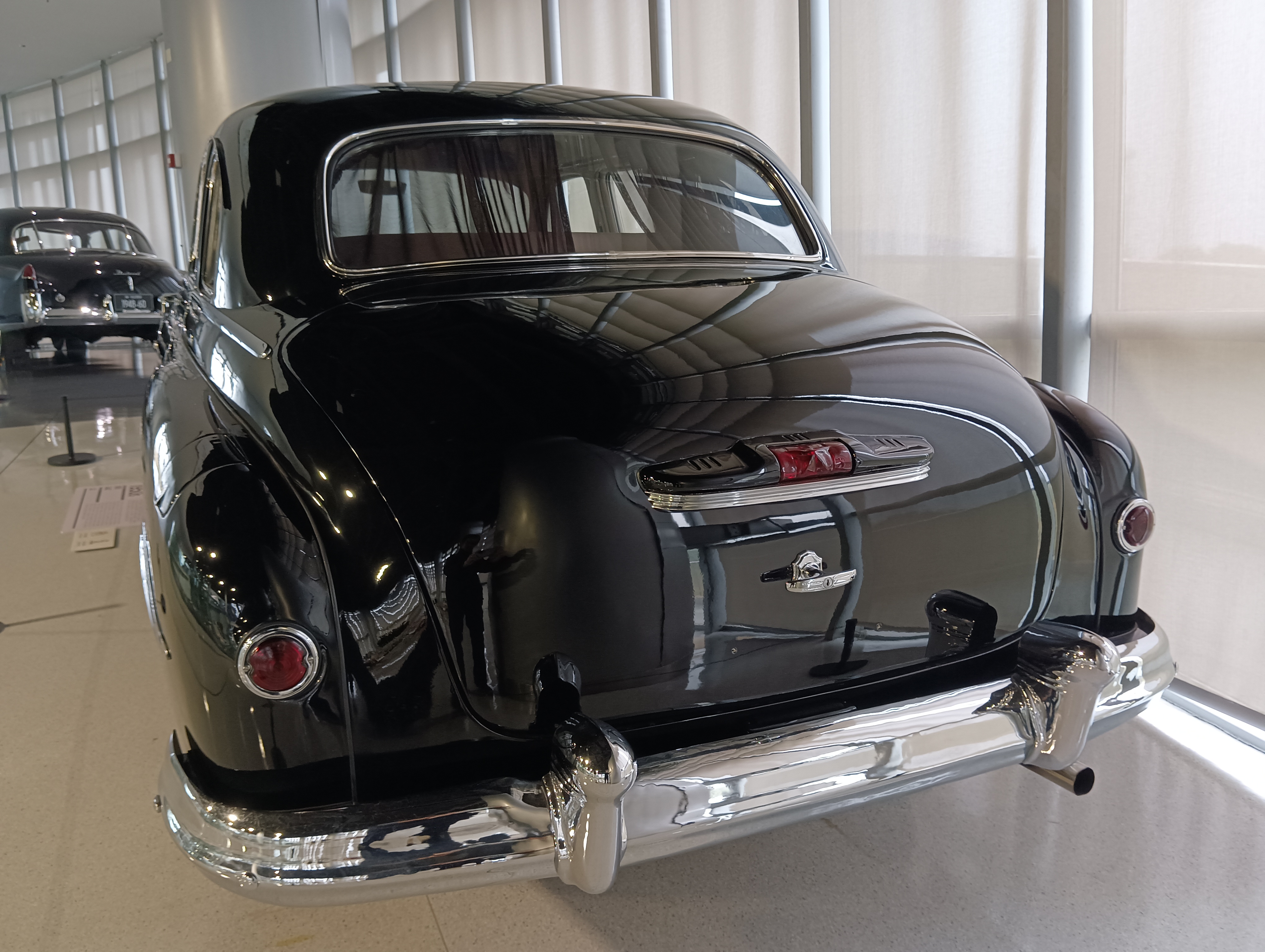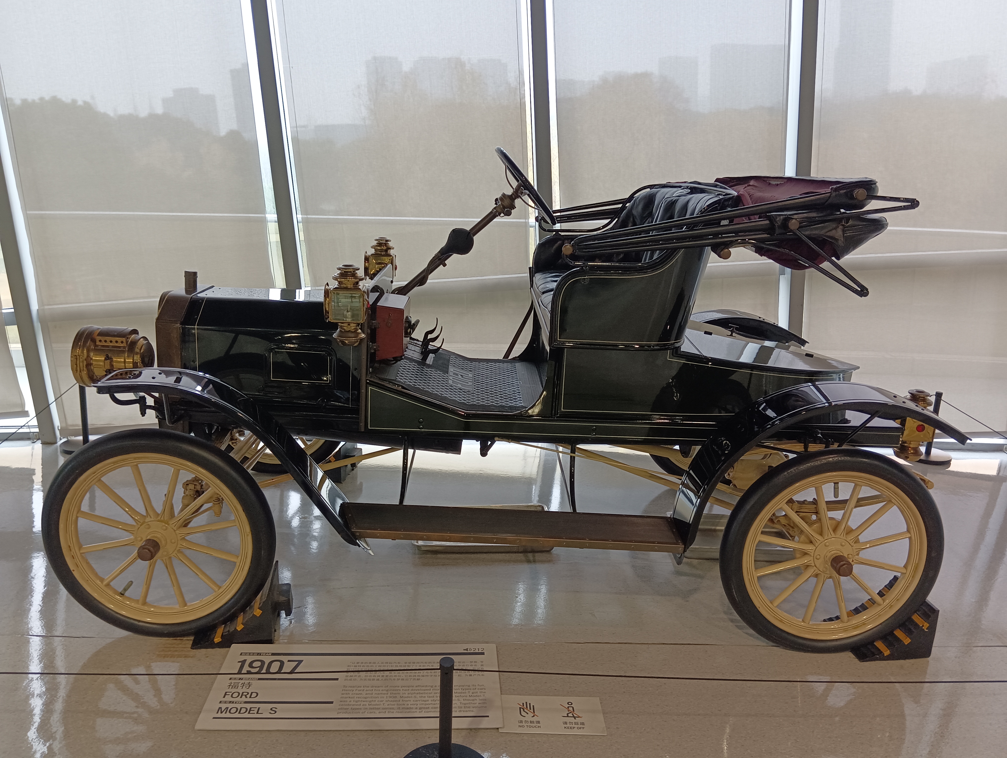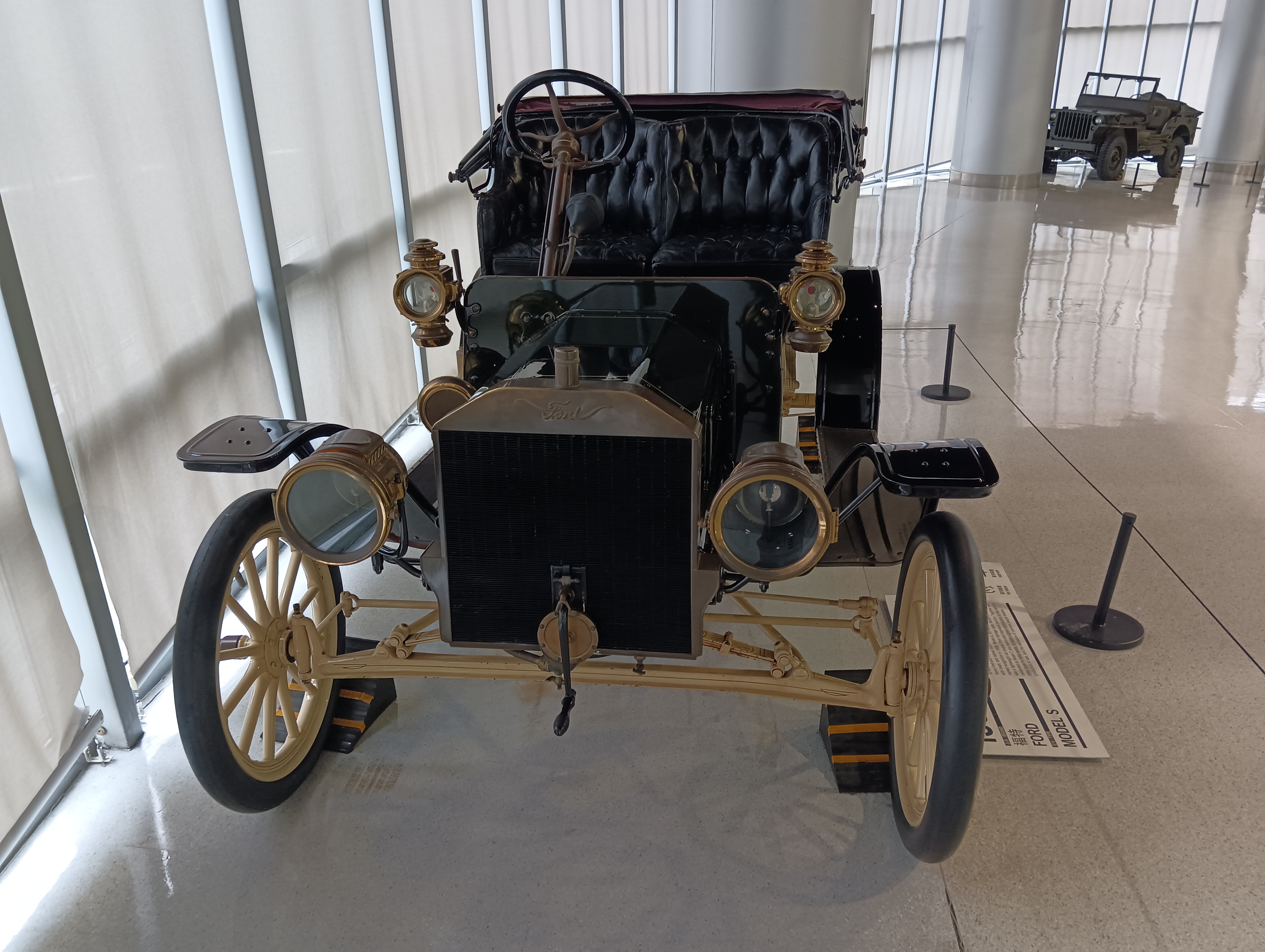 整个博物馆室内是一个四层环形结构,每层之间通过环形坡道连接,坡道上也停了一些展品车。