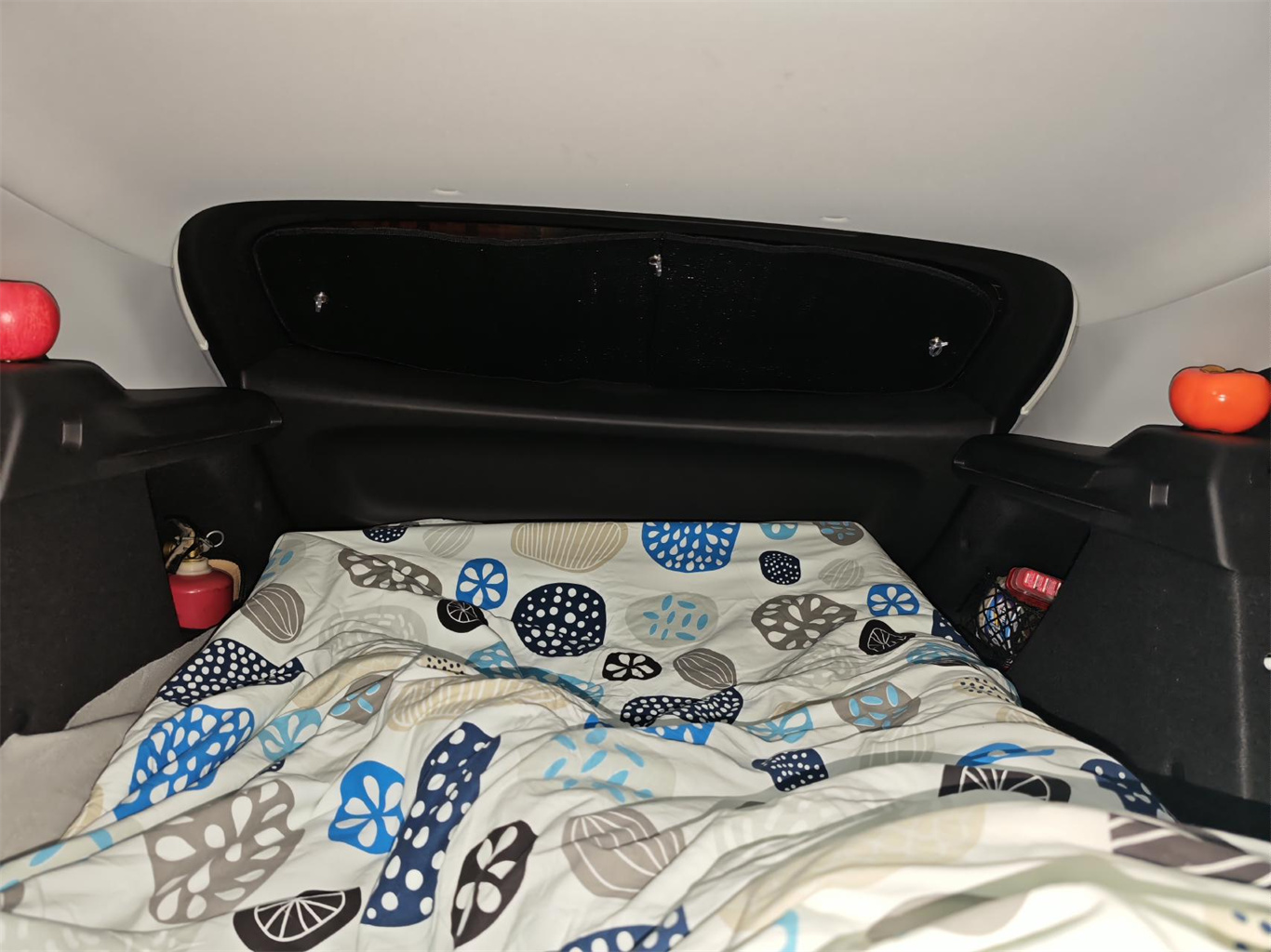 开到福建八一高速服务区,已经快12点了!!放倒车子后排座位有1.8米*1.2米的空间,平躺二个成人没问题!