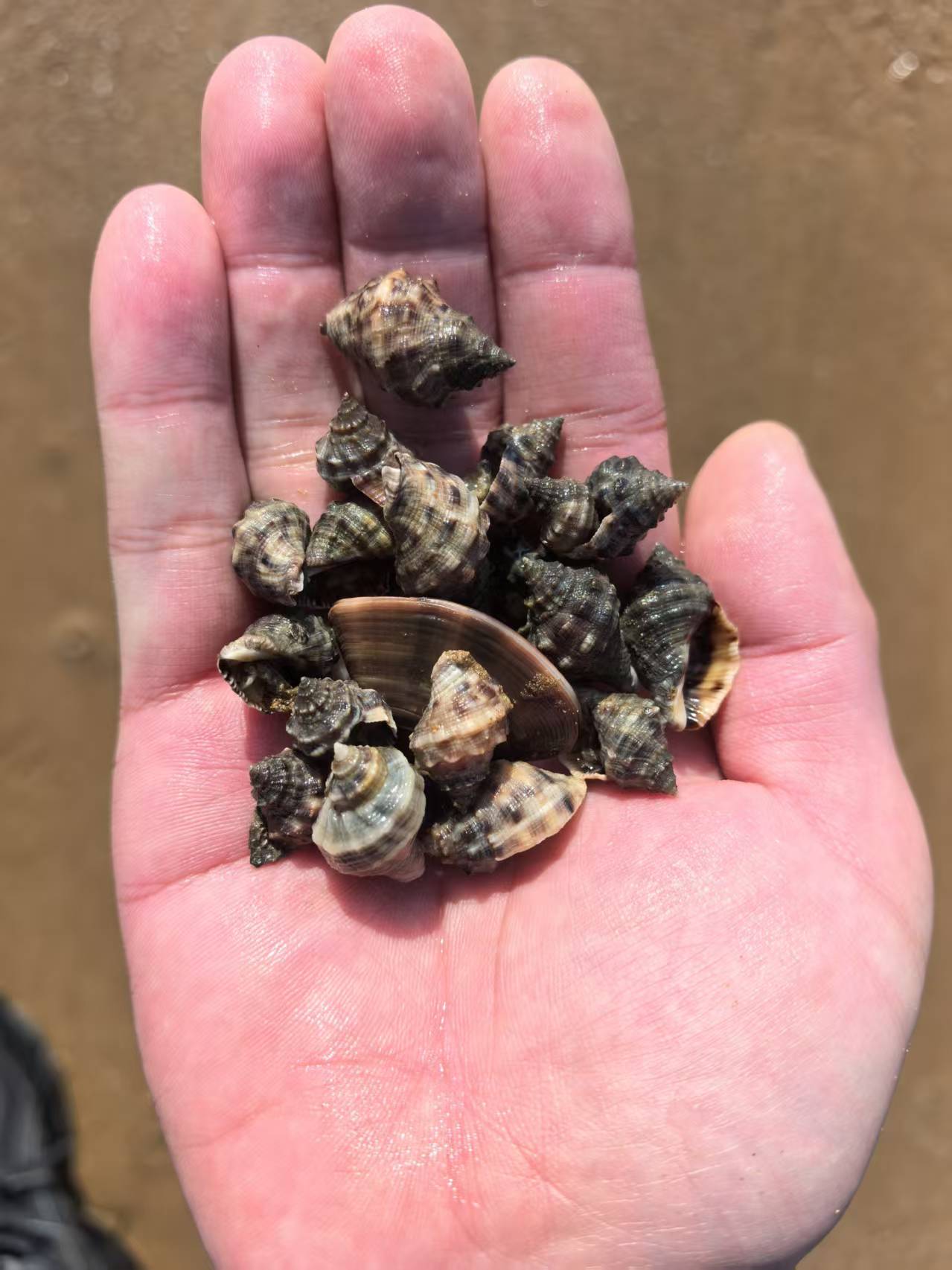 到达海边,这边的海跟宁波的差不多,海水浑浊很多滩涂,号称中国最美滩涂,小孩子很喜欢这种地方,玩了一天。
