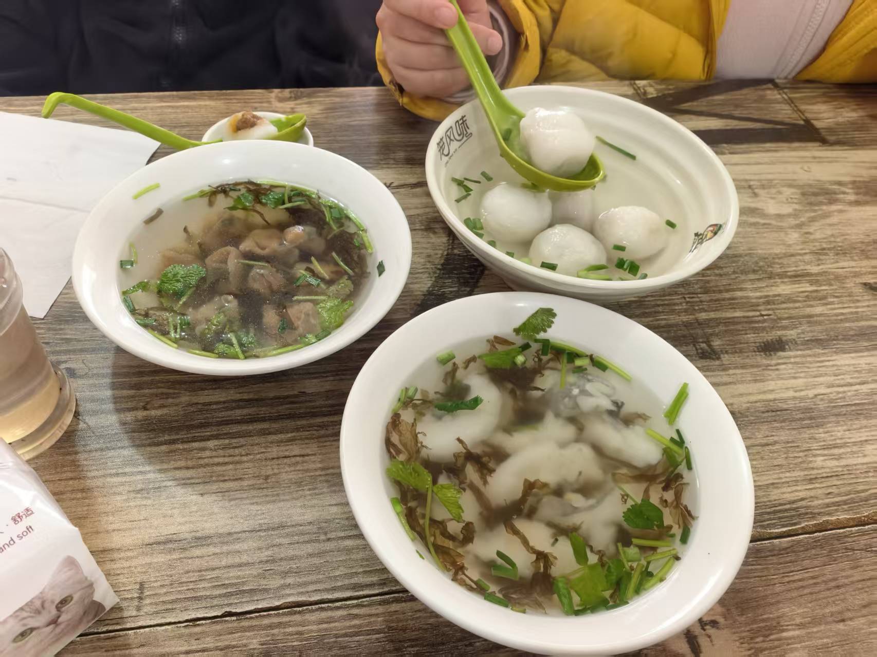 吃的不想发了,基本上都是重复的,就那几样:西果汤,鸭子,海蛎,饼,竹笋冻什么的,一会就吃饱。