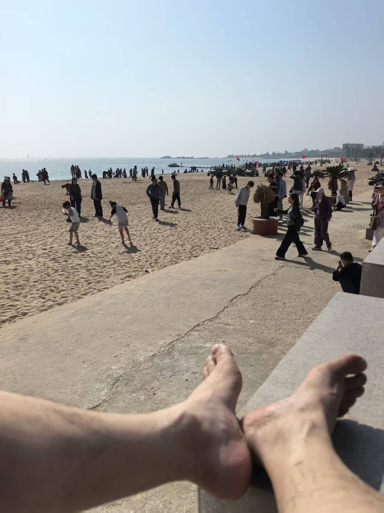 这沙滩,这海水,这温度,主要是人还不多,买了双拖鞋在海边躺了一下午